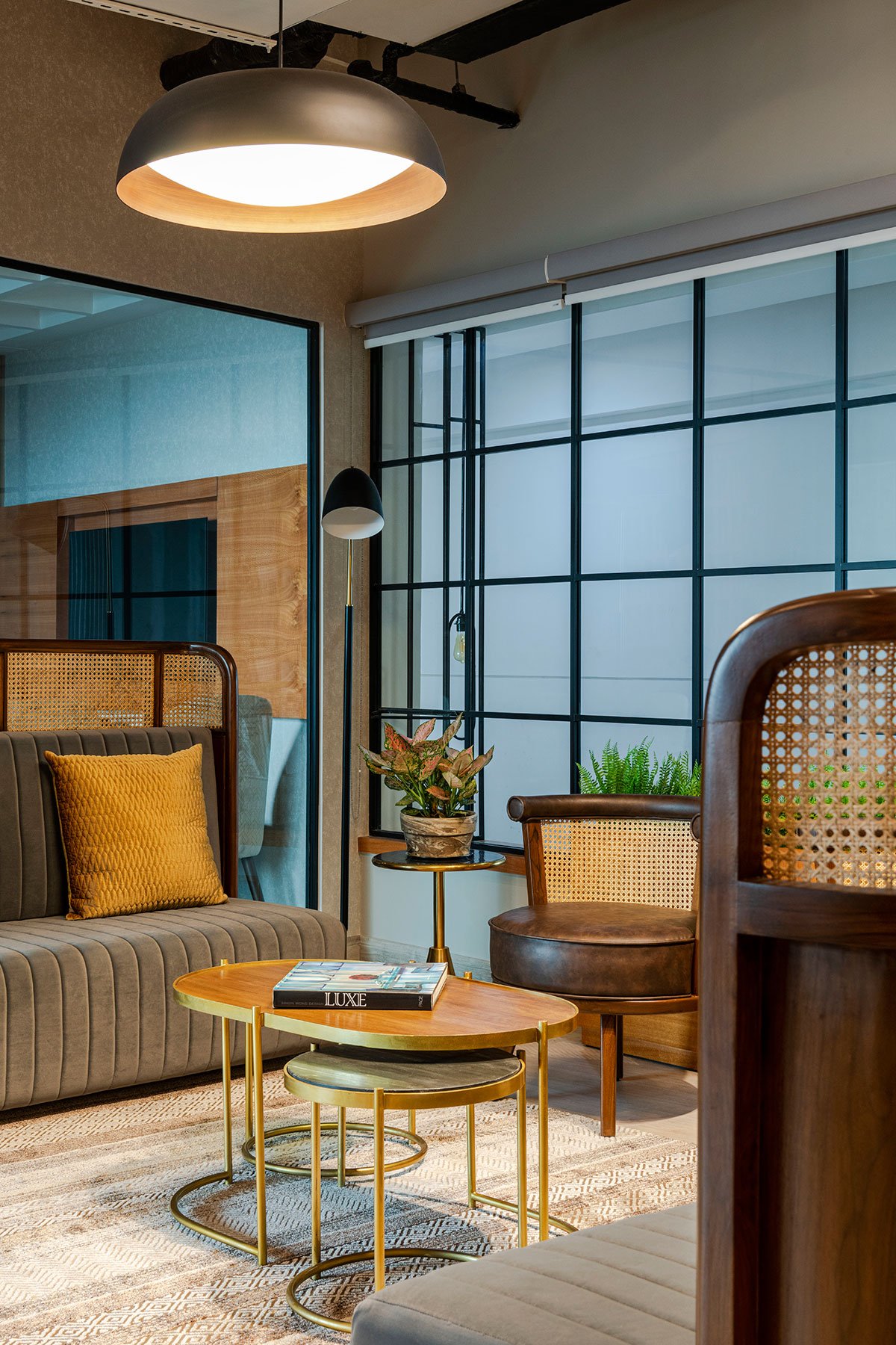 With people returning to their workspaces, the design needs to make one feel the essence of a home while the worker transitions from home to office. Thus, the use of muted colours and the use of cane in multiple places was a way to get the right balance between a workspace and home. The future of office design in a post-pandemic scenario requires it to be highly customisable, quick to execute and economical in its initial cost of design. The elements and construction are kept minimal and favourable to improve, to “maximise” the design and lease out as and when required. The design recognizes growth and the multi-faceted nature of a transformative office.