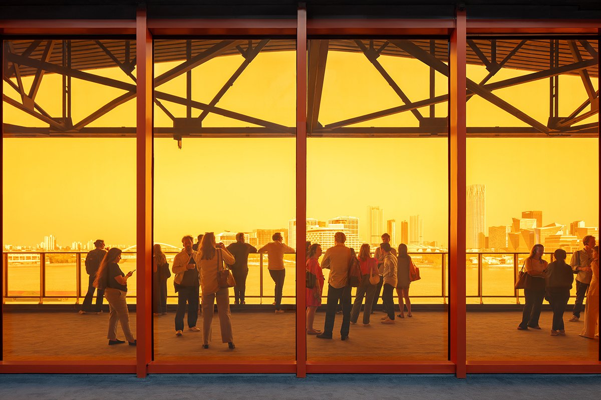 Around these enigmatic industrial buildings, the more recent unfinished structures have been completed as shops, restaurants, and hotels, with neutral façades, green roofs, and outdoor terraces. They define a public space that capitalises on its waterfront location, with a landscape design by Field Operations.