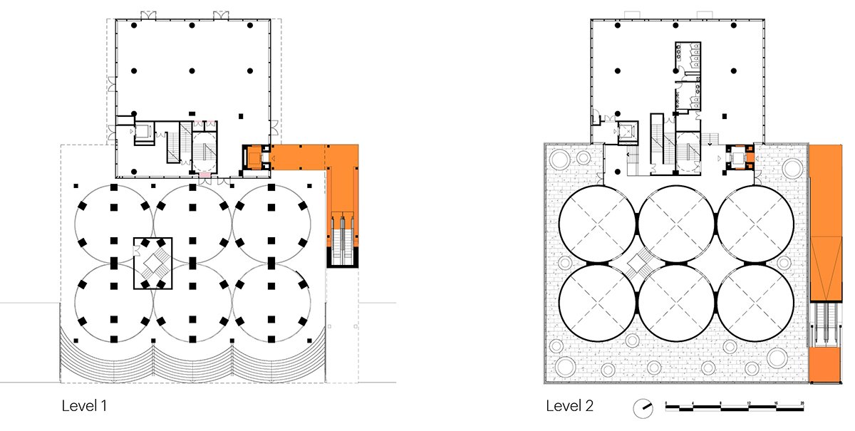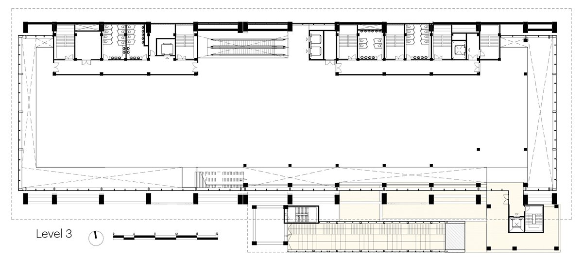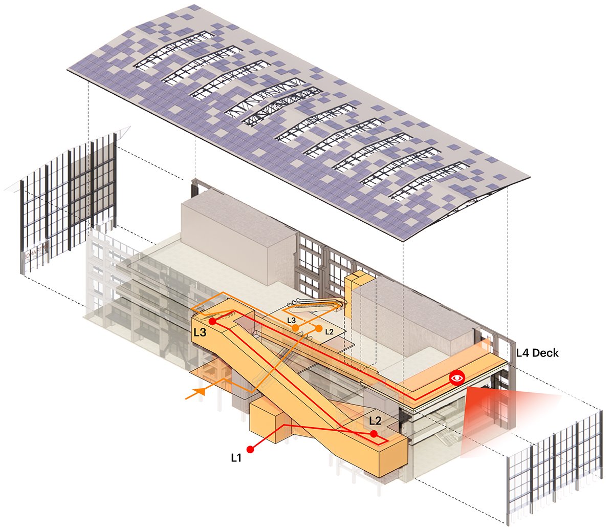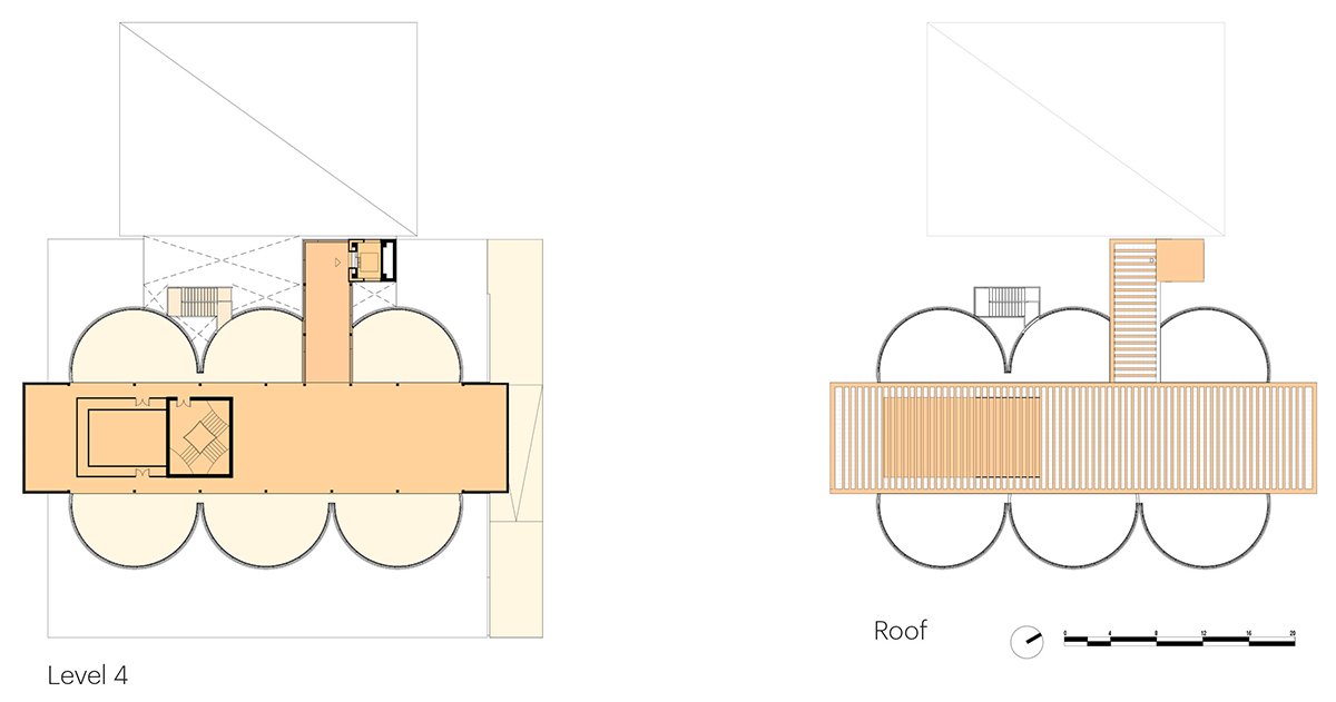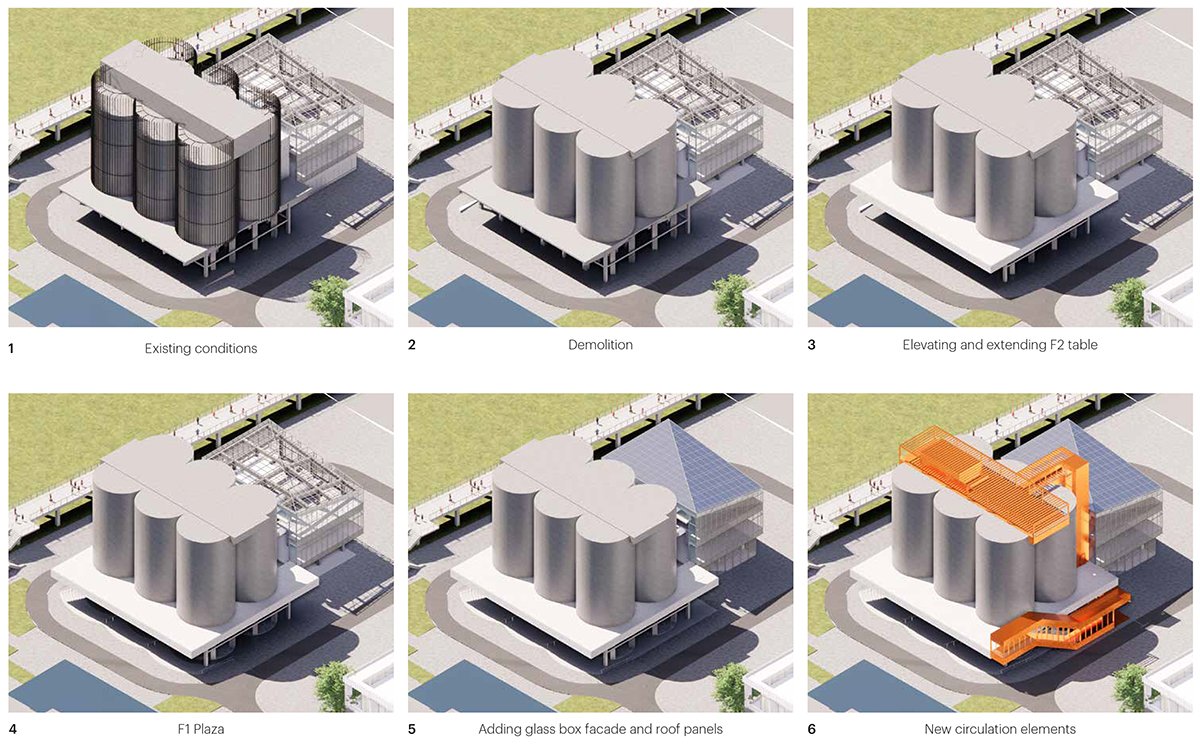 In their design, MVRDV opted to work with all of these elements of the site’s history, minimising the carbon emissions and waste materials associated with demolishing and rebuilding the structures.