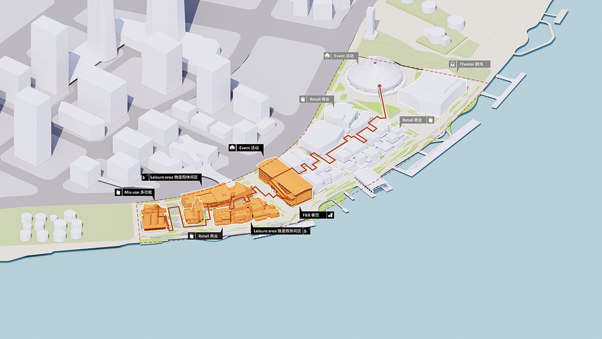 [Text as submitted by architect] MVRDV has completed the GATE M West Bund Dream Center, transforming a former cement factory into a culture and leisure district that adds to Shanghai’s expanding string of West Bund cultural projects. The design makes a cohesive urban space out of a collection of buildings from different time periods, reusing the existing structures to minimise carbon emissions, and introducing an unmistakable identity with its bright orange circulation elements. Offering possibilities for shopping, eating, drinking, skateboarding, rock climbing, and visiting exhibitions and events – or simply relaxing by the riverside – the area has already become an award-winning and popular destination for Shanghai residents and visitors alike.