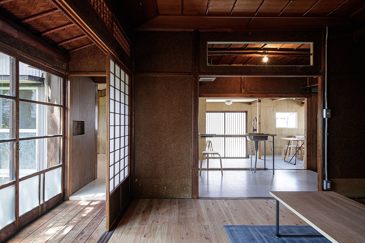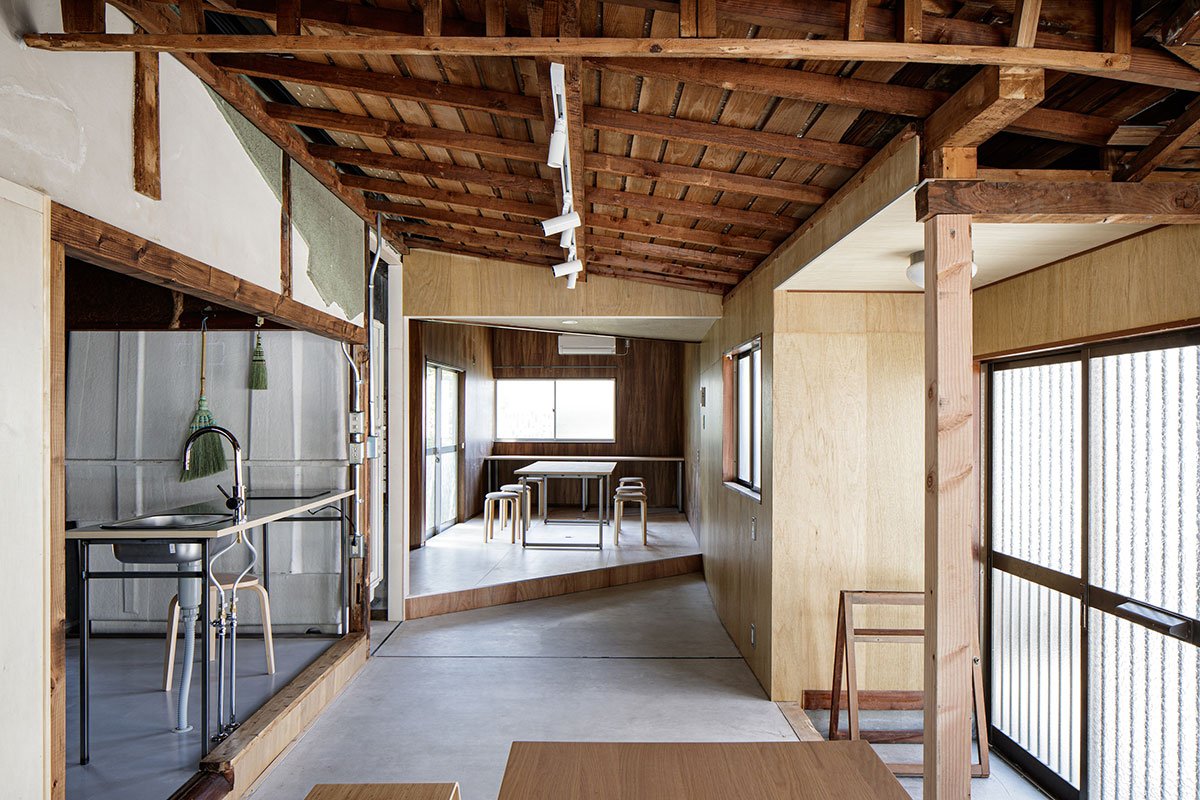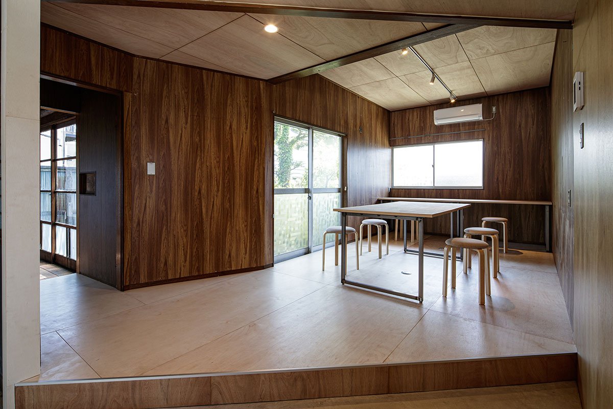 Similar to what happened with the exterior, even in the interior, the renovation started by removing and demolishing all the broken and damaged elements that got rotten over the years and the state of disuse in which the house has been for a long time. The extension’s walls and ceiling have been repaired and are all covered with wooden panels all over their surface. The entrance floor is made of polished concrete and it is laid on a lower level than the other rooms of the office building, being this a traditional feature of the Japanese-style house called Doma. Both the primary and secondary structure of the extension has been reinforced by adding some beams and some new pillars, especially where the external corrugated metal sheets have been replaced, and with them also the wooden structure that supports the metal cover has been fixed.