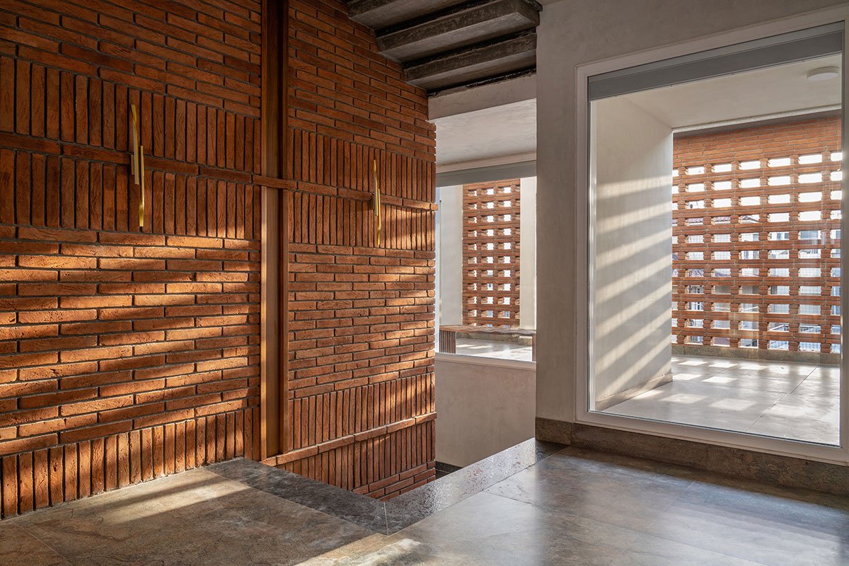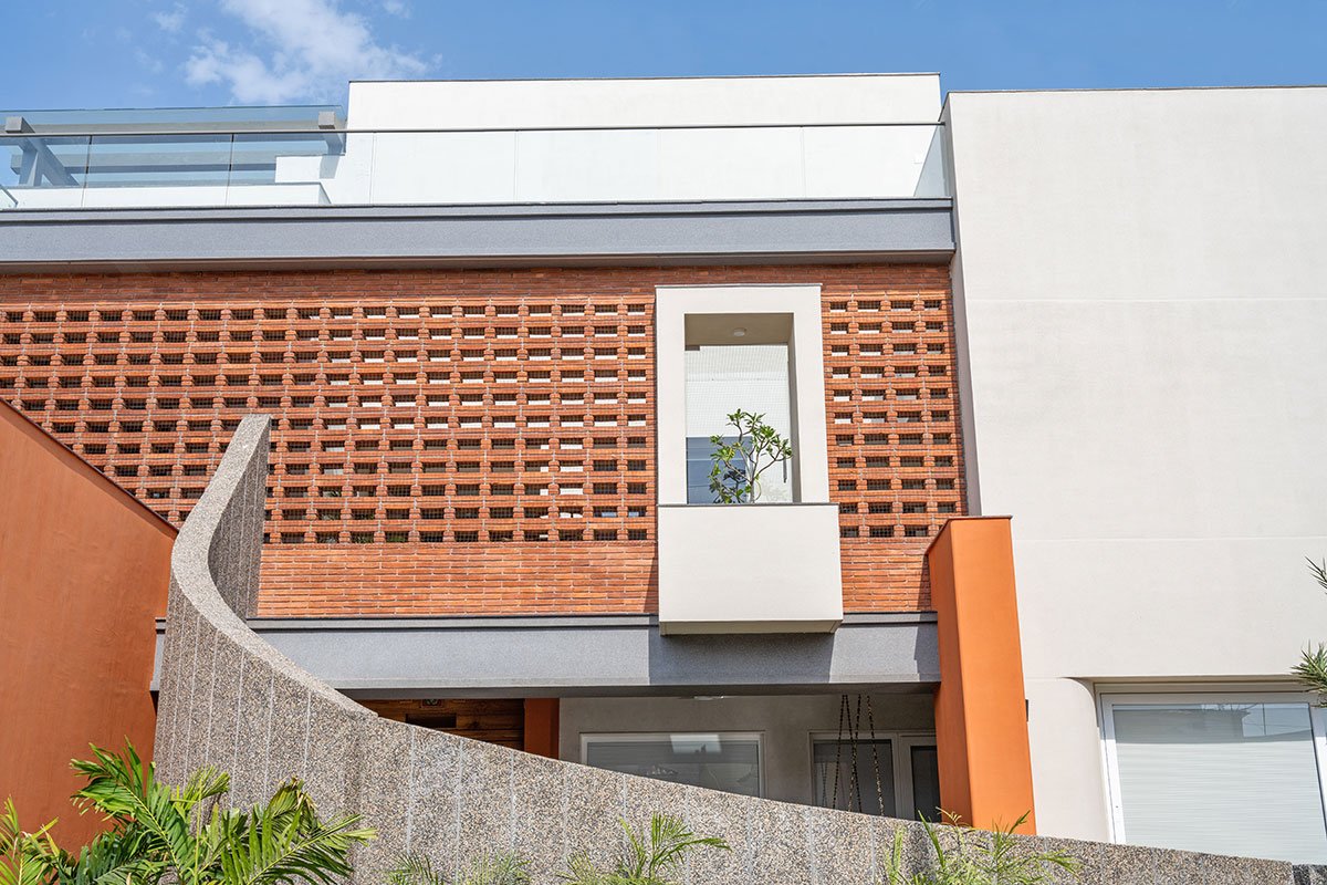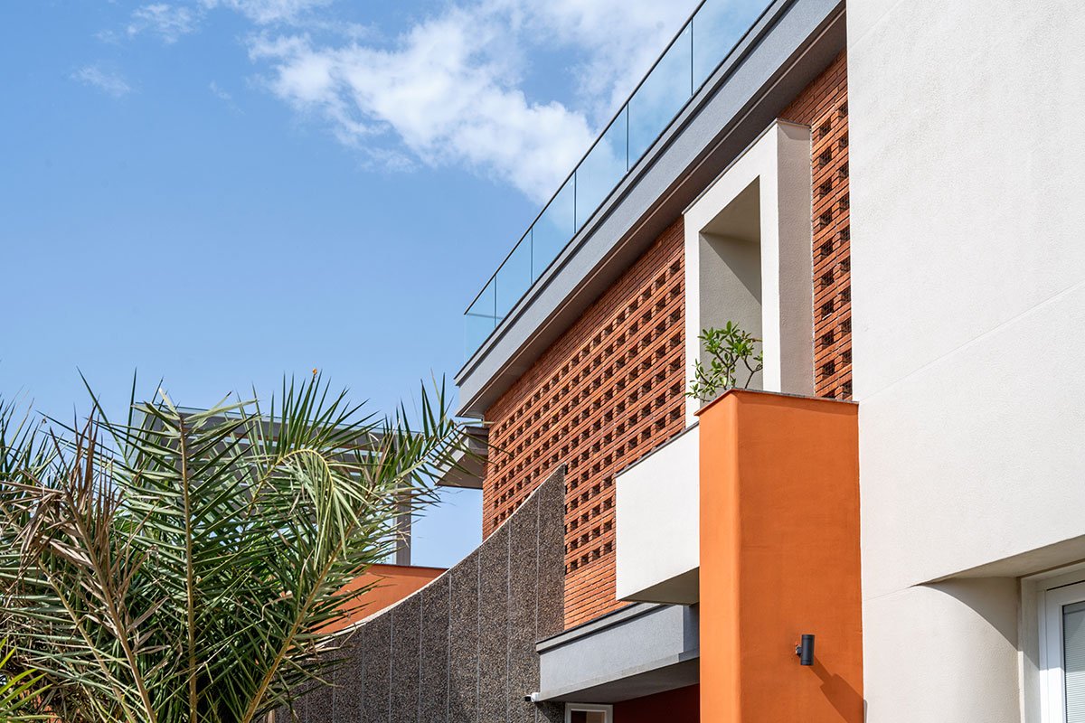 On the first floor, addressing the client’s need for both privacy and ambience in the balcony area, the architect incorporated a perforated brick wall. This creative solution served a dual purpose, ensuring the desired level of privacy while also infusing the space with an inviting atmosphere. The soft, minimal light filtering through the perforations created a captivating interplay of shadows and highlights, lending an artistic touch to the entire area.