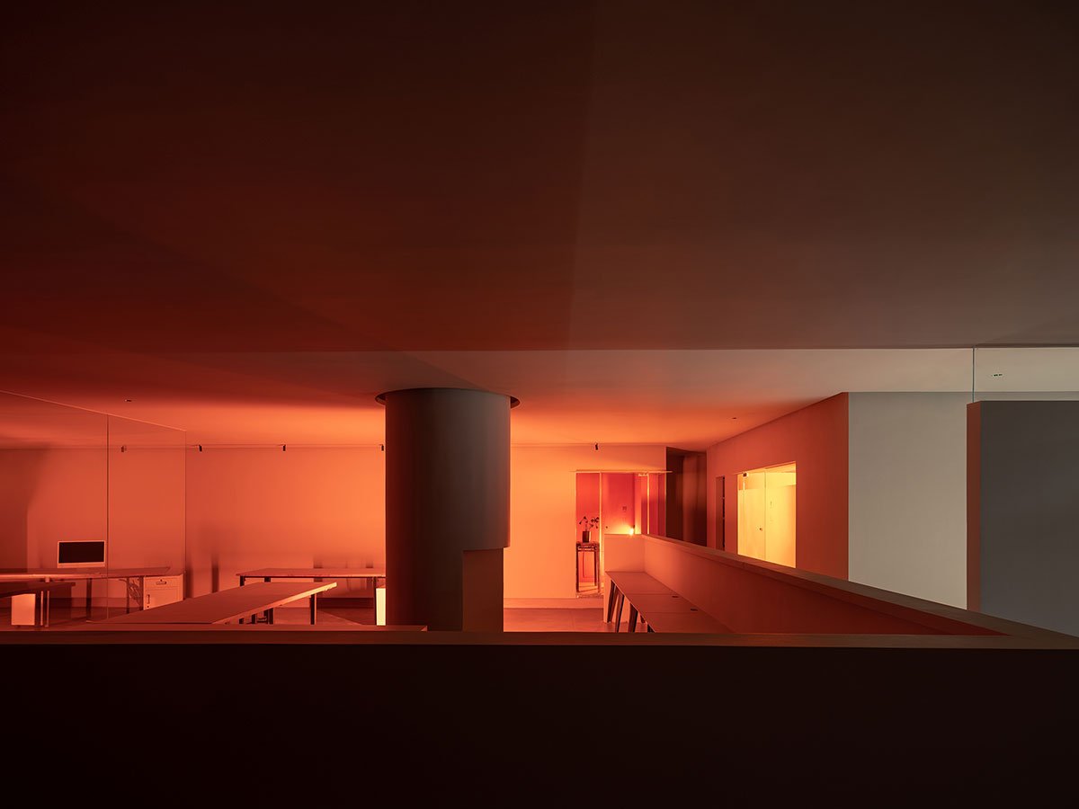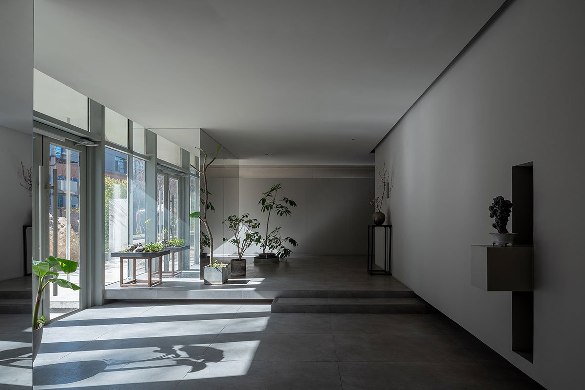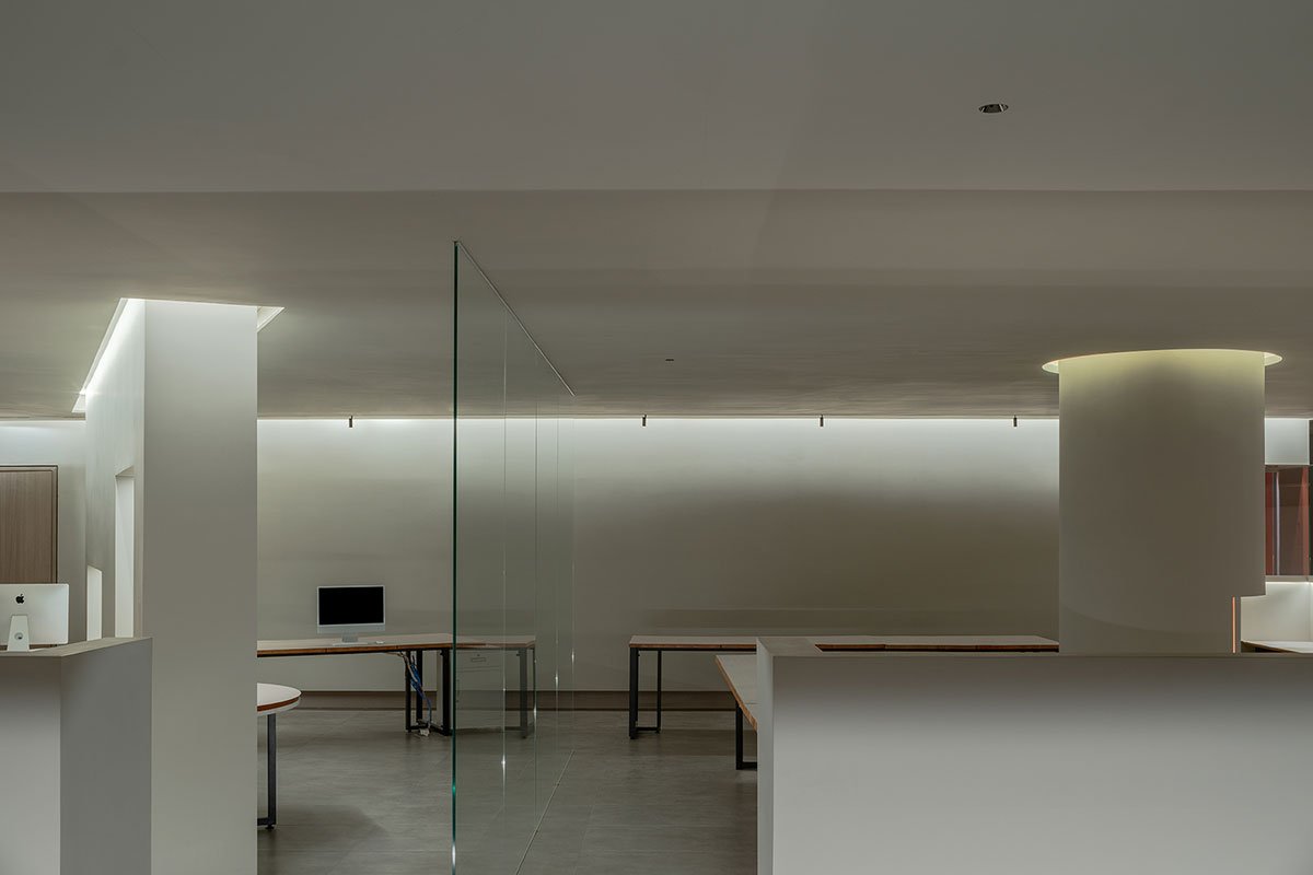 If Shui Yuan reinterprets the Eastern courtyard’s spiritual essence in contemporary manufacturing spaces designed in the Bauhaus style, then in the office portion contemporary design methodologies are applied to more explicitly convey the Eastern aims and create an intriguing intertextual link.