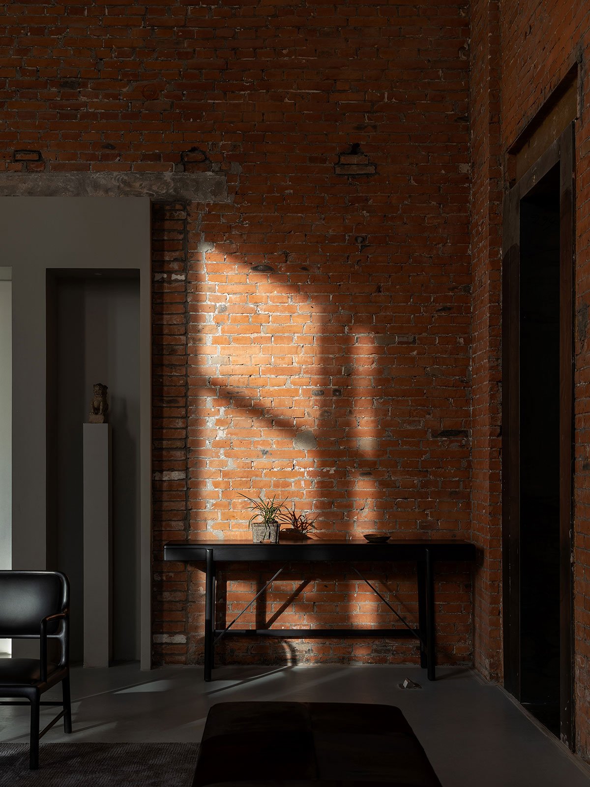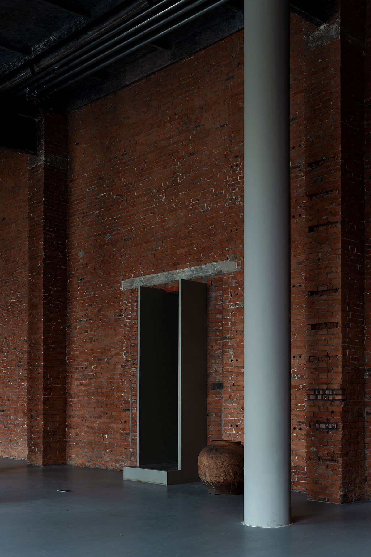 Within the 6 meters high space, only a few rounded gray columns are left standing, creating a sense of openness and blankness that forms the material basis of the spiritual nature of the space. The red bricks from over 60 years ago have transformed from a functionalist facade into a new curtain on the stage of the times.