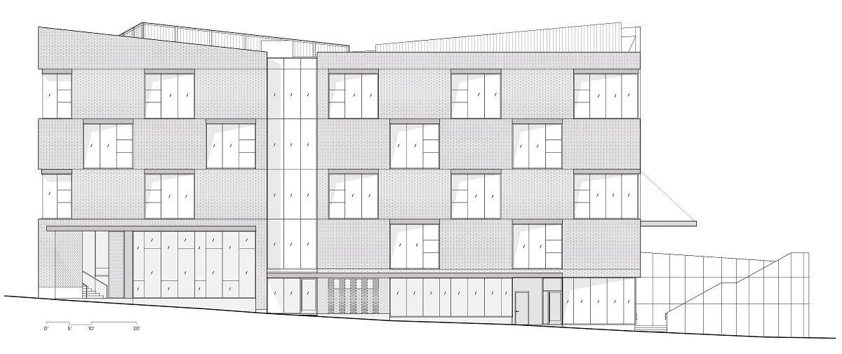 Excerpt: Sideyard, designed by Skylab Architecture, is a working-class building aimed at public transportation connectivity, pedestrian openness, and bicycle priority access. This building program will reintegrate a pedestrian stair down from the Burnside Bridge level to third avenue akin to the original stairs that previously existed. The development helps to strengthen the connection between the Eastside community and the westside downtown urban core.