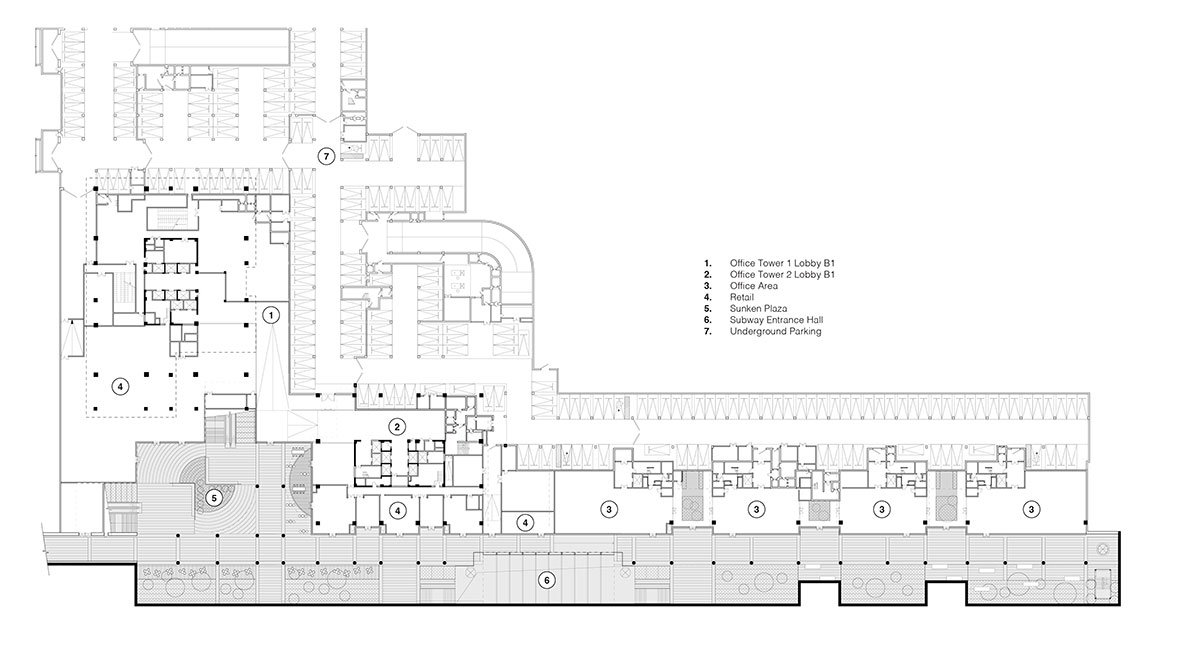 Superimpose Architecture integrated the green belt zone belonging to the government in the design and created voids in the landscape to get more daylight in the otherwise dark basement. By doing so, the design offers commuters a unique, pleasant, green and smooth transition from subway arrival to urban development.