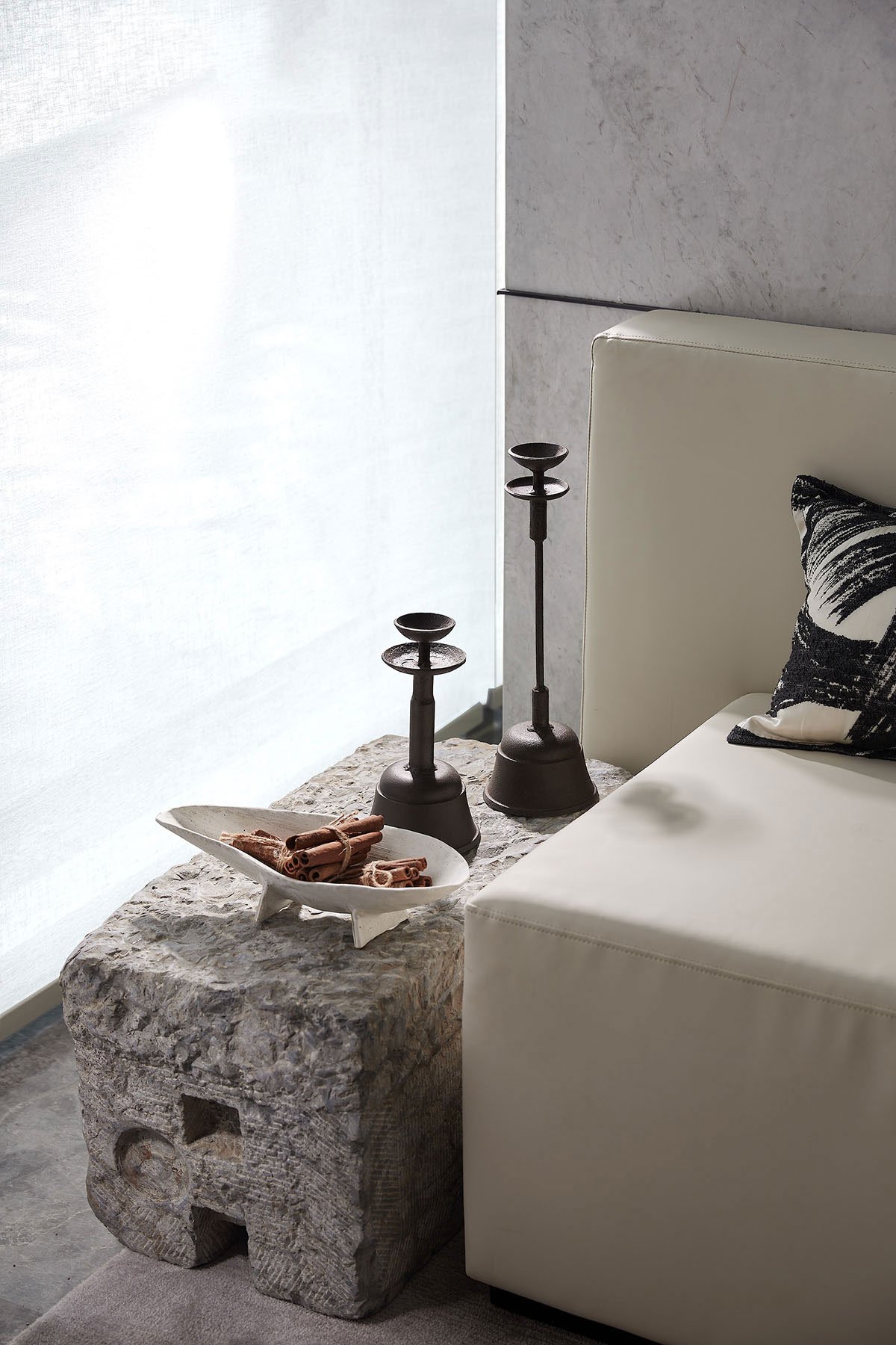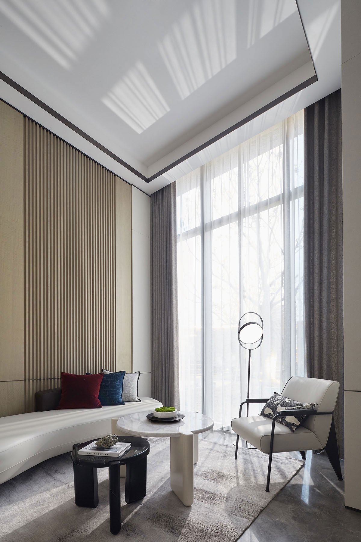 The design inherits the techniques of traditional Chinese gardens, to provide varying views at every step. The view at the negotiation area suddenly opens up. The tranquil space brings in outdoor landscape. The shadows of outside tree branches penetrate the window and fall into the interior, which enrich the layering of the space and interact with the fabric textures and artworks.The form of sofas combines Oriental elegance and Western luxury, and harmonizes with marbles, wood and metal, together producing a modern yet traditional aesthetic.