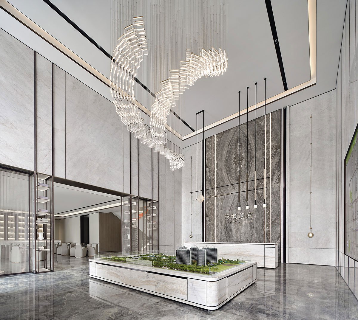 The design and artistic expressions of the space fully embody the fast pace of urban life, the profound local cultural context and the upscale living environment of the residential development. The project integrates past and present glory in one space, which evokes infinite imagination about future lifestyle.Through fusing emotions, culture, art and humanism, it gives new interpretation of Oriental artistic conception and redefines contemporary spatial aesthetics.