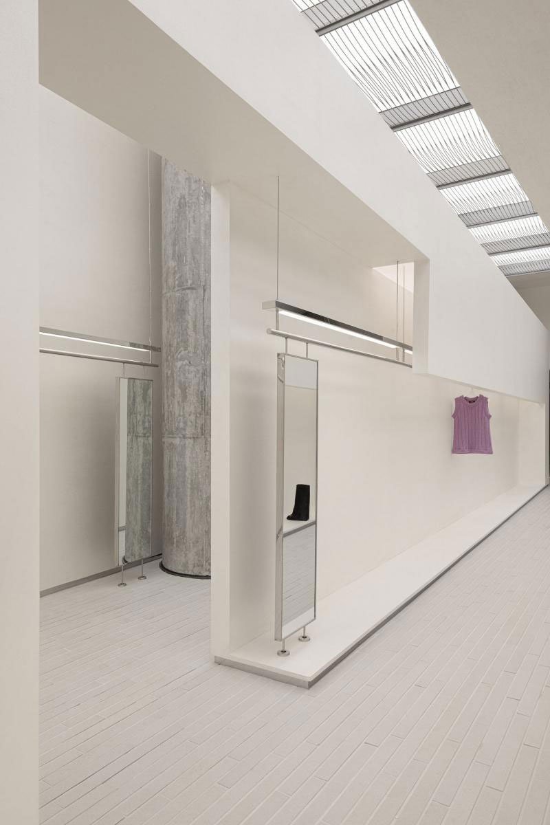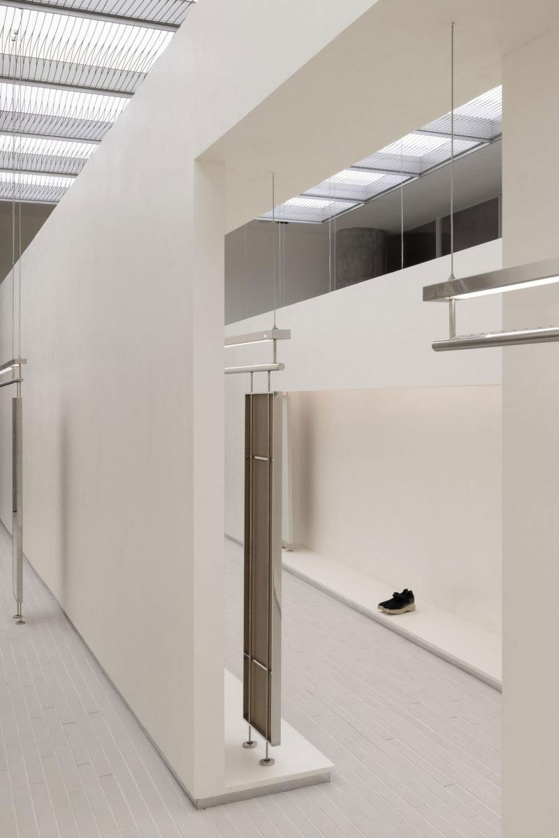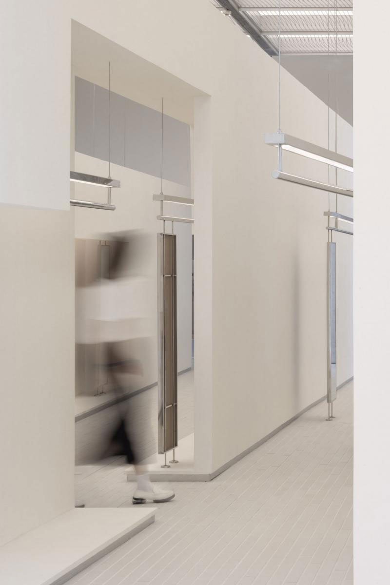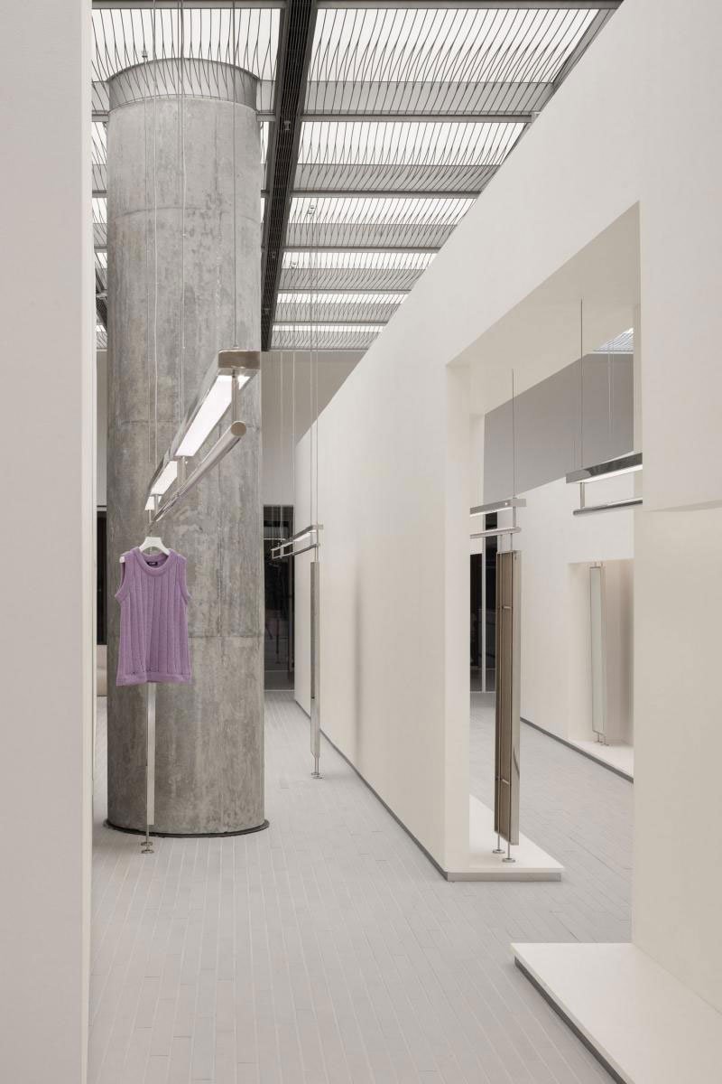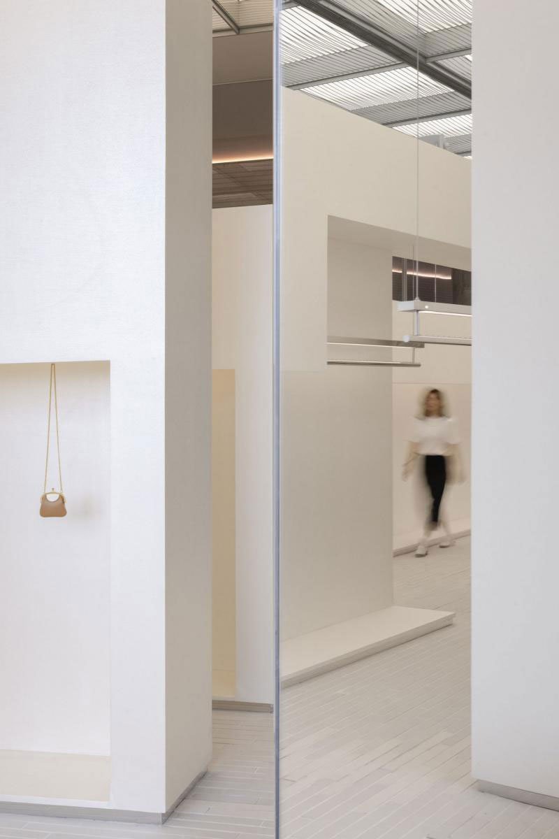 In this space, everything is expected to be ‘lightweight’, so that customers can only feel the space, garments and themselves when moving in it. The clothes rails, lamp boards and mirrors are suspended or floating in the air. All details reveal a coherent logic, giving the space an exquisite touch and a sense of layering.