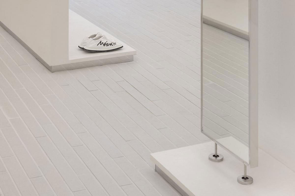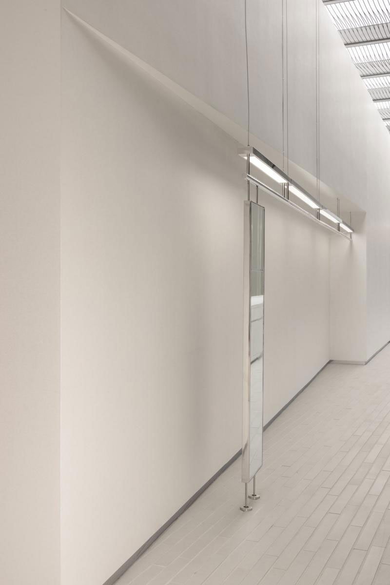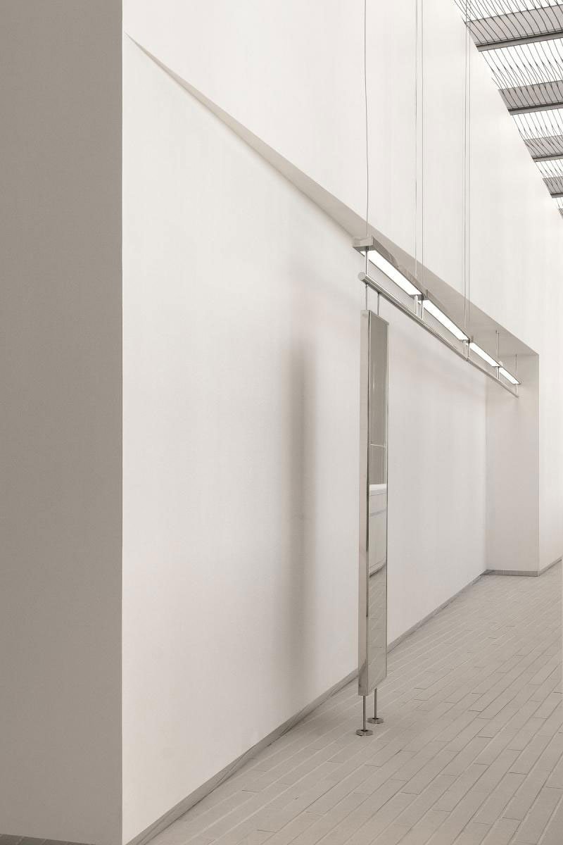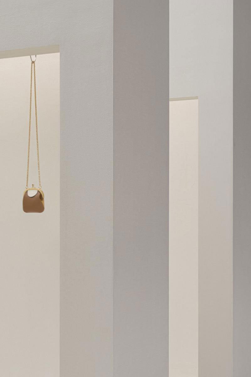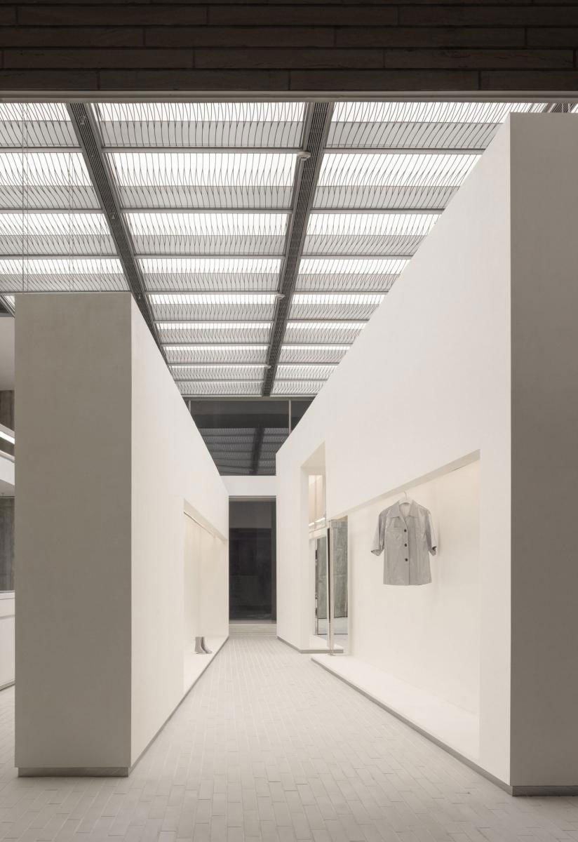 In this space, everything is expected to be ‘lightweight’, so that customers can only feel the space, garments and themselves when moving in it. The clothes rails, lamp boards and mirrors are suspended or floating in the air. All details reveal a coherent logic, giving the space an exquisite touch and a sense of layering.