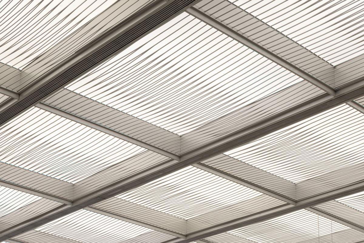 The suspended ceiling is a combination of light membrane and bespoke ultra-thin metal grille, which produces soft, bright and even lighting effects as if sunshine passes through the sea, thereby adding a sense of vitality, freedom and layering to the sedate, ritual space. The elaborately-designed lighting effects make the space more bright and comfortable, and highlight the spatial layers as well.