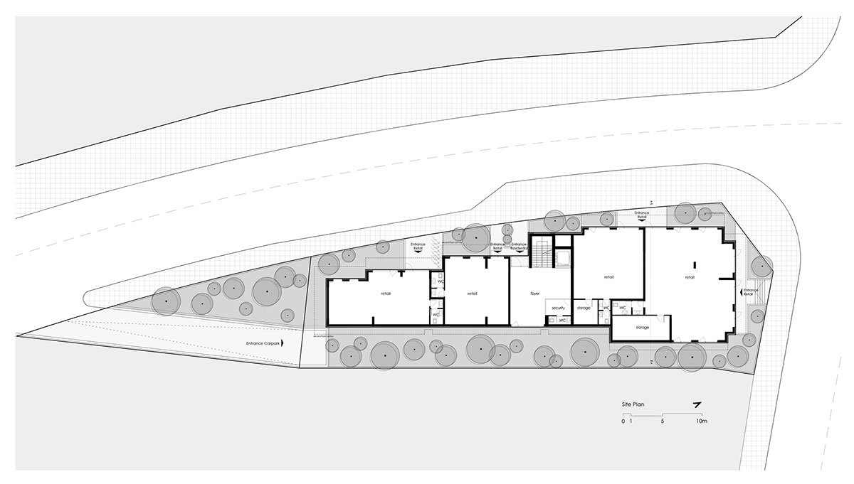 [Text as submitted by architect] Srebarna 18 residential building is located in a rapidly developing area between Loven Park and Vitosha metro station in the capital of Bulgaria, Sofia. The complex triangular corner property, as well as urban planning restrictions, largely determine the volume of the building. In order to achieve a definite design and functional living spaces, an orthogonal scheme was used in the plan.