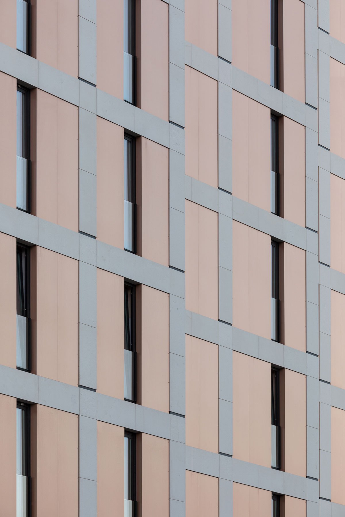 Srebarna 18 has an external shell executed as a suspended ventilated façade and thanks to the orientation of the building and the large scale copper sheets, Srebarna 18 has a different look during the day – from morning until dawn – the reflected sunlight gives different colours and silhouettes.