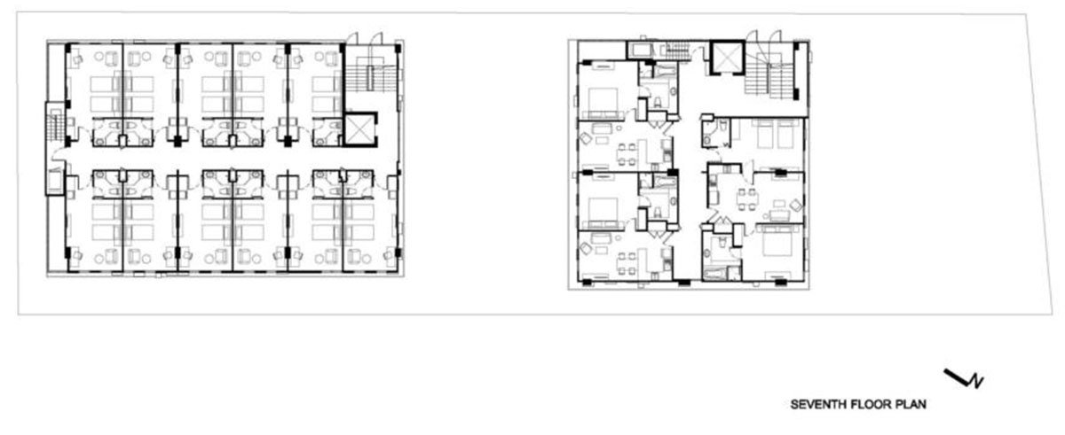[Text as submitted by Architect] The project is located on Srinakarin Road, one of the main roads of Southern Bangkok not far from Suvarnabhumi Airport with connection to the airport rail link. It targets at both travelers who stay within this semi-suburban area and who would make a journey further to the central. Lining in a row on the narrow plot of land, this 7-storey hotel with rooftop is divided into two buildings, connecting by a hotel lobby. The second floor consists of a dining area and a service counter while 92 guest rooms are on the upper floors. On the rooftop of the front building is a place for a control room but the rooftop of the back building provides space for meeting and banquet. The overall utility space is 5,365 square meters.