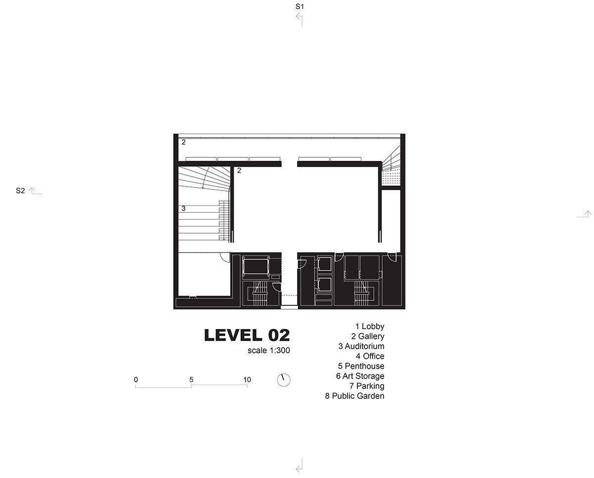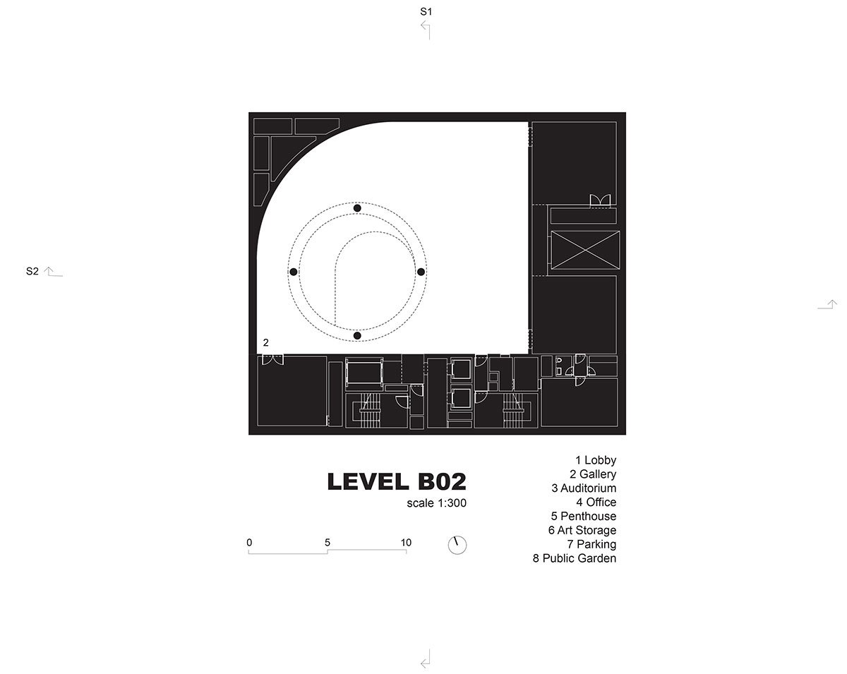 The ramp spirals around a triple-height void and defines the geometry of the grand staircase which acts as both a threshold and auditorium space for screenings and lectures, leading to the second-floor galleries. An experimental and unexpected mix of art spaces, offices, and public areas unfolds above and below ground, creating a new urban complex that invites the public to engage with contemporary art in Seoul.