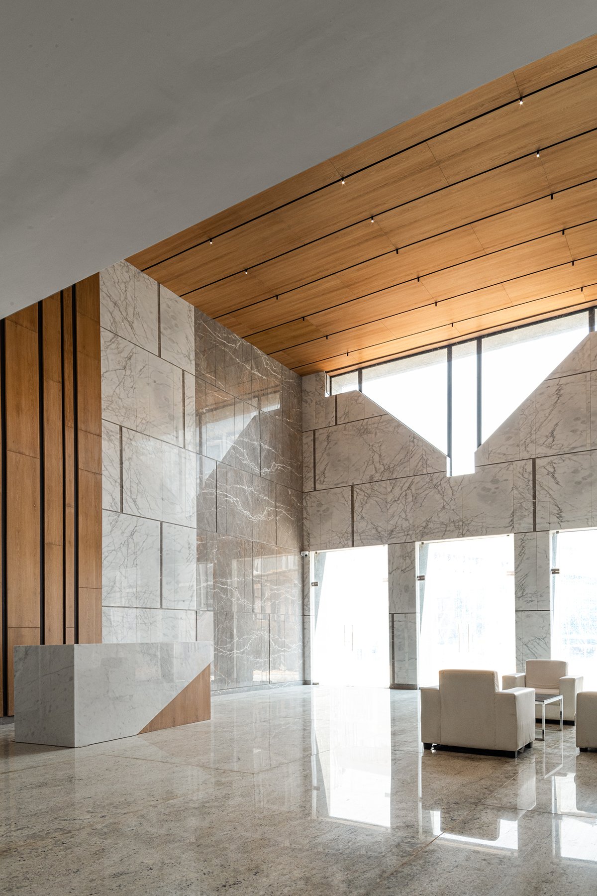 The structure with form-finished Vierendeel columns and the facade treatment of the arches with aggregate plaster and stone-clad walls, both lend a robust and zealous vocabulary to the building that is new and yet reminiscent of the heritage building on the campus. We hope to make this building sit politely in the existing urban landscape as if it was always there and yet exuberate a very classy and modern outlook that makes it relevant to its time.