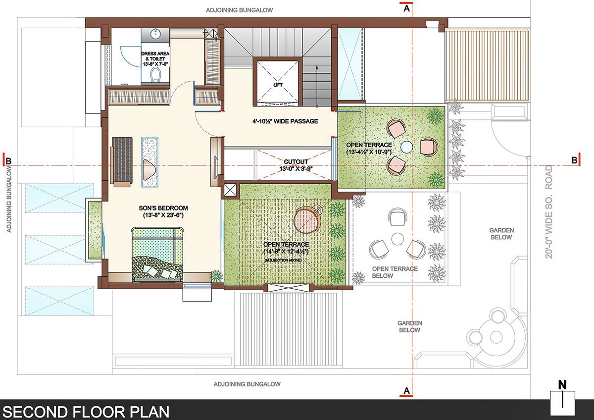 Care has been taken that during summers when temperatures hit 45° – 47°, the building itself works as a shading structure, the open spaces are provided with requisite shade and a screen wall is provided on the south facing garden on the ground and second floors.