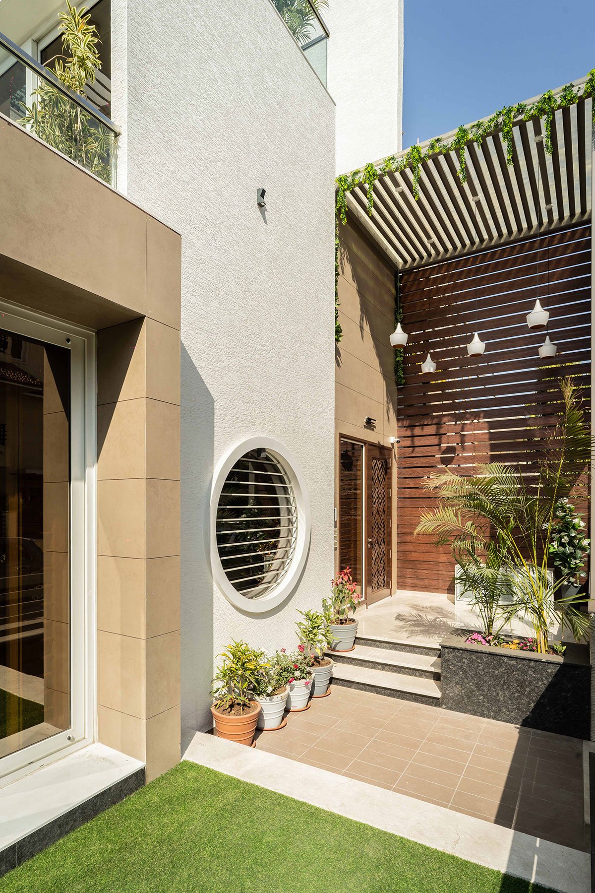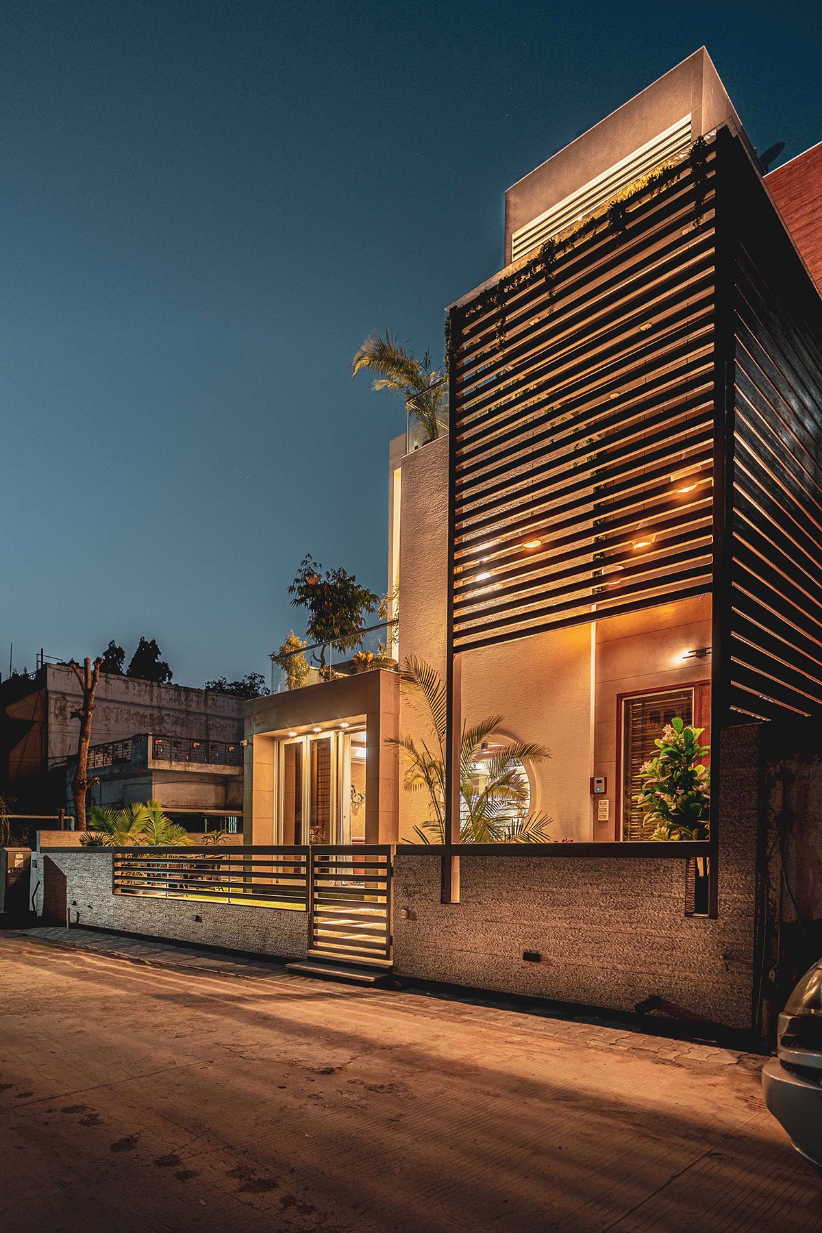 [Text as submitted by architect] Located in the densely populated surroundings of the Paldi area in Ahmedabad, is this compact plot of 42’ x 62’. Exposed to the residential developments on the three sides and a road in the front, it would be needless to say that the design approach for the house had to create a sense of privacy and security.