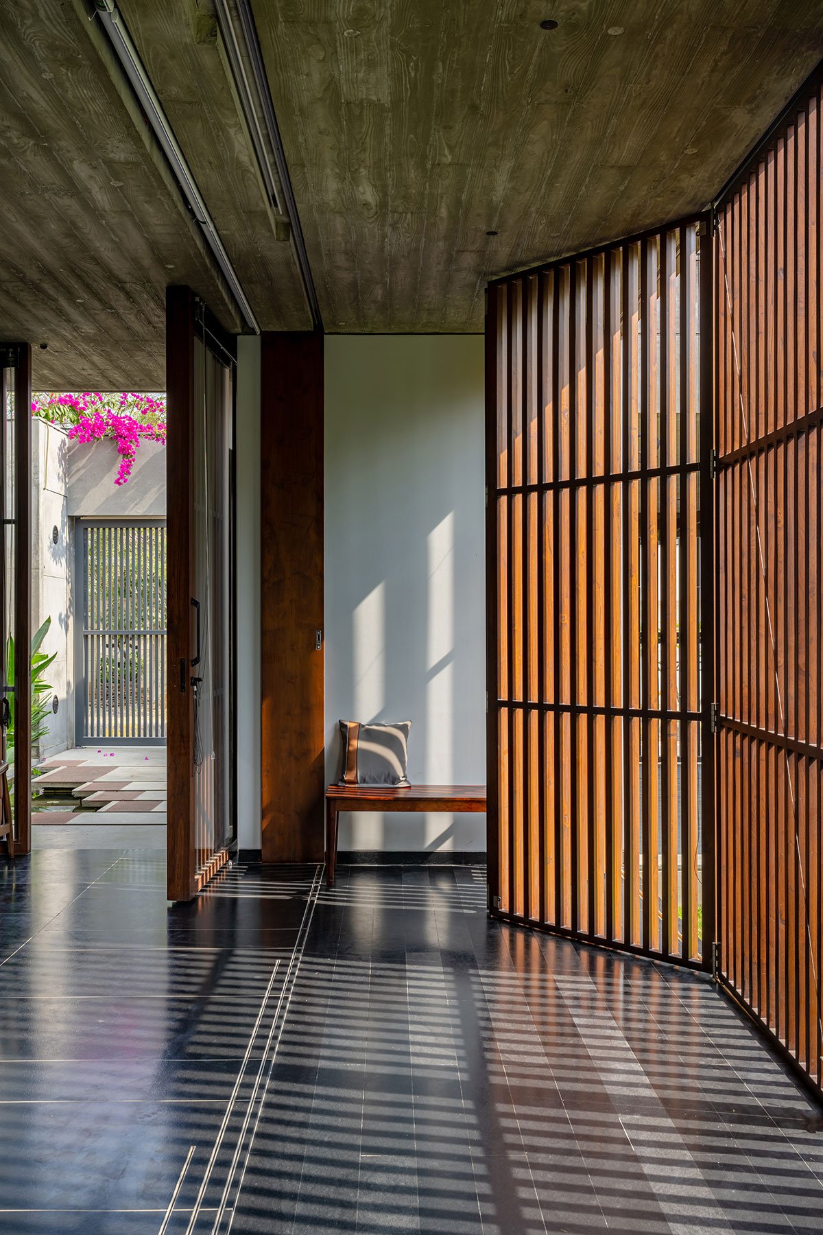 The space stays dramatic with an amazing play of light and shadow all along the day.