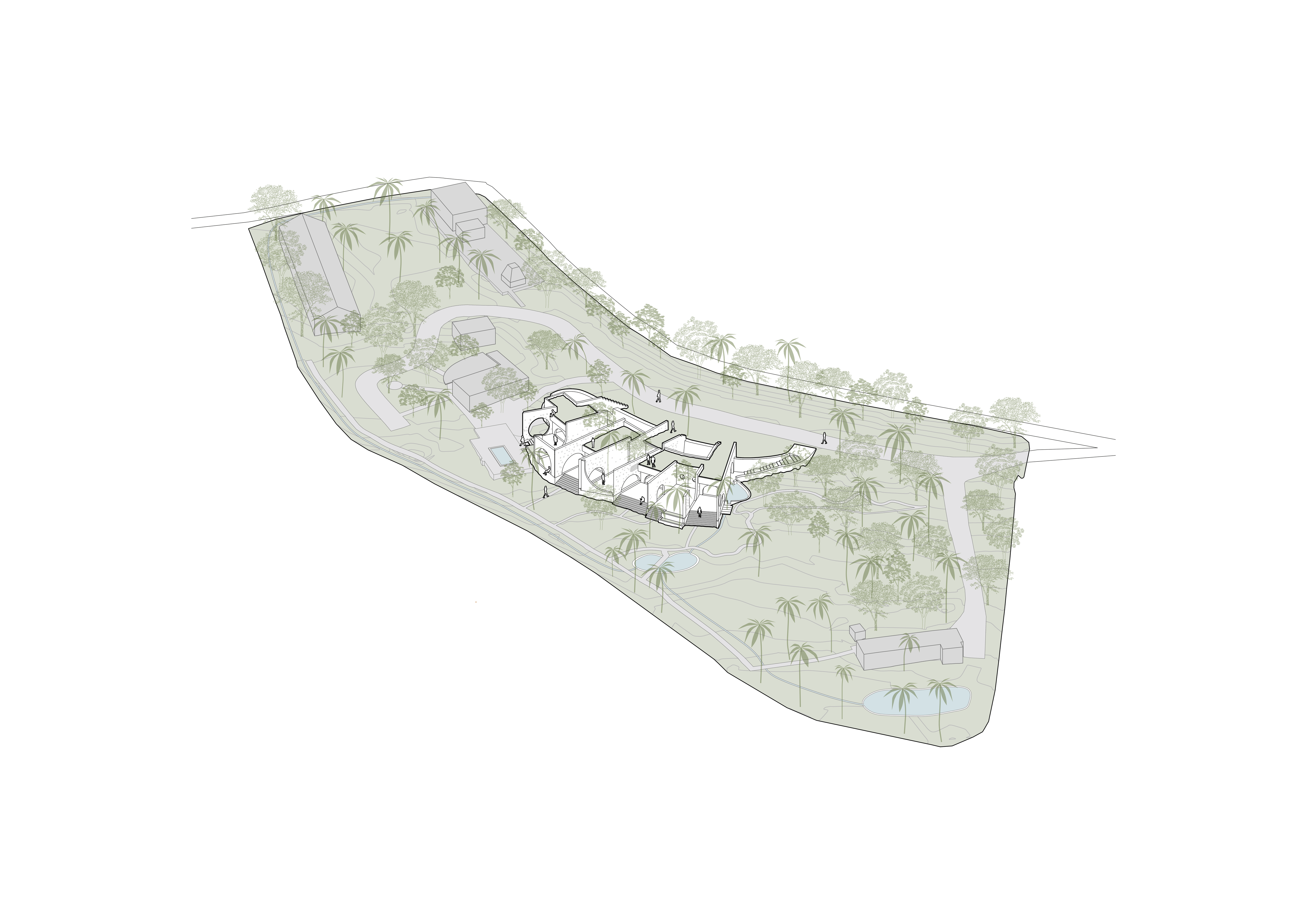 The clients were a couple of philanthropists, who, alongside the private section, wanted a multifunctional public centre freely accessible to the villagers. The brief demanded that the complex should not be limited to a specific functional program but rather should be able to host school classes, children’s workshops, seminars, exhibitions, concerts, and other events, but also double up as guest quarters for the owners’ visiting friends.