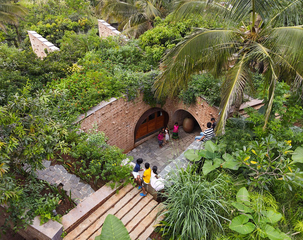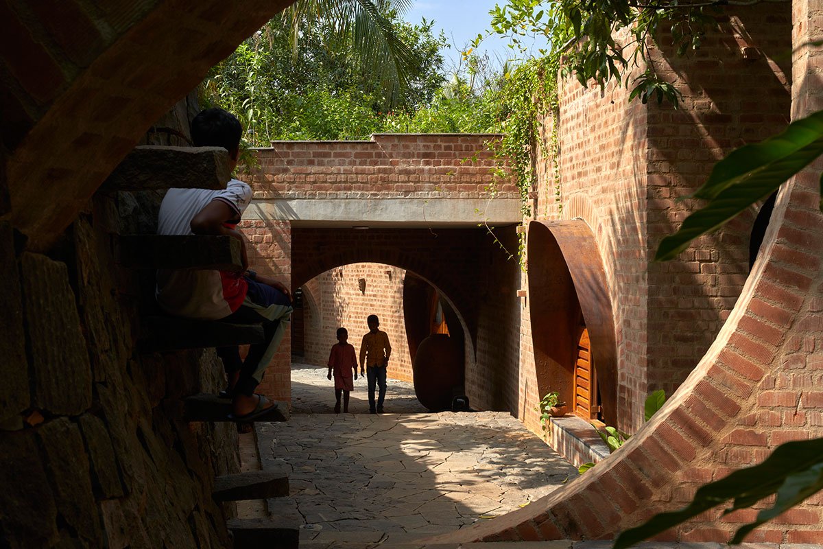[Text as submitted by architect] Just outside the Indian village of Kaggalipura, some 40 km south of Bangalore in the state of Karnataka, a series of brick walls peeps through the dense tropical vegetation of mango, banana, coconut and sugarcane. Although resembling ancient ruins, the structures– aptly named “Subterranean Ruins” – are part of an unusual architectural project by the architecture practice, A Threshold. Not far from Bannerghatta National Park, an ideal destination for birdwatchers, the village of Kaggalipura named after the Kaggali tree (Acacia catechu), a constant feature of the rural landscape of this important agricultural area, is home to a few thousand inhabitants, many of whom – laborers, artists, and craftsmen – were directly involved in the building process.