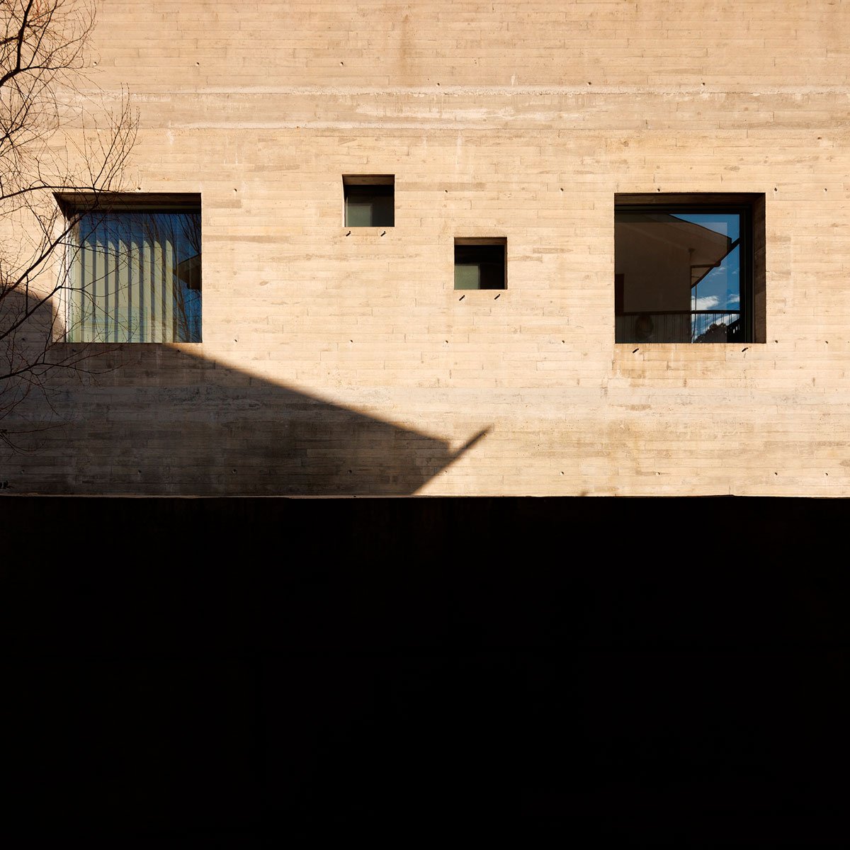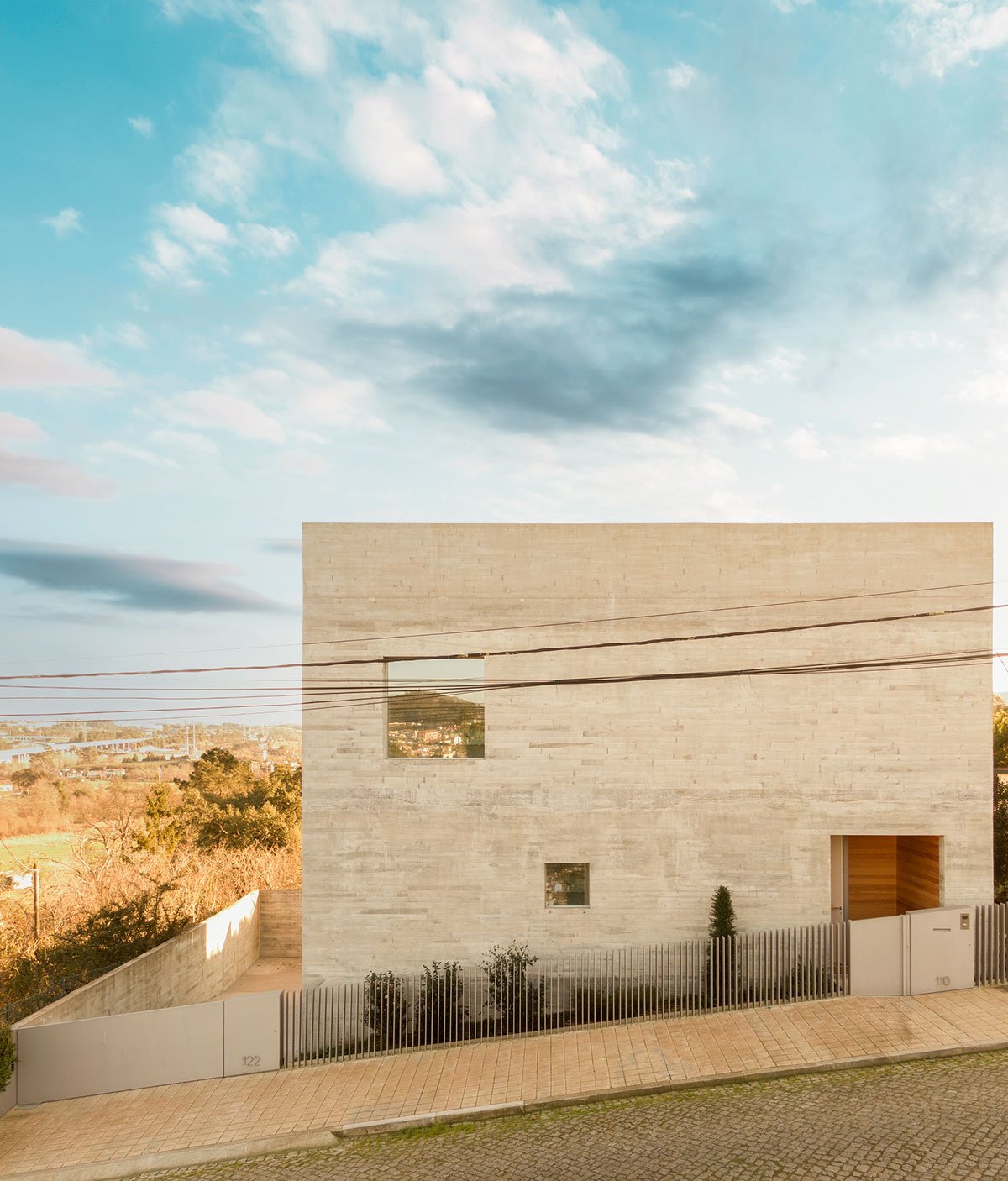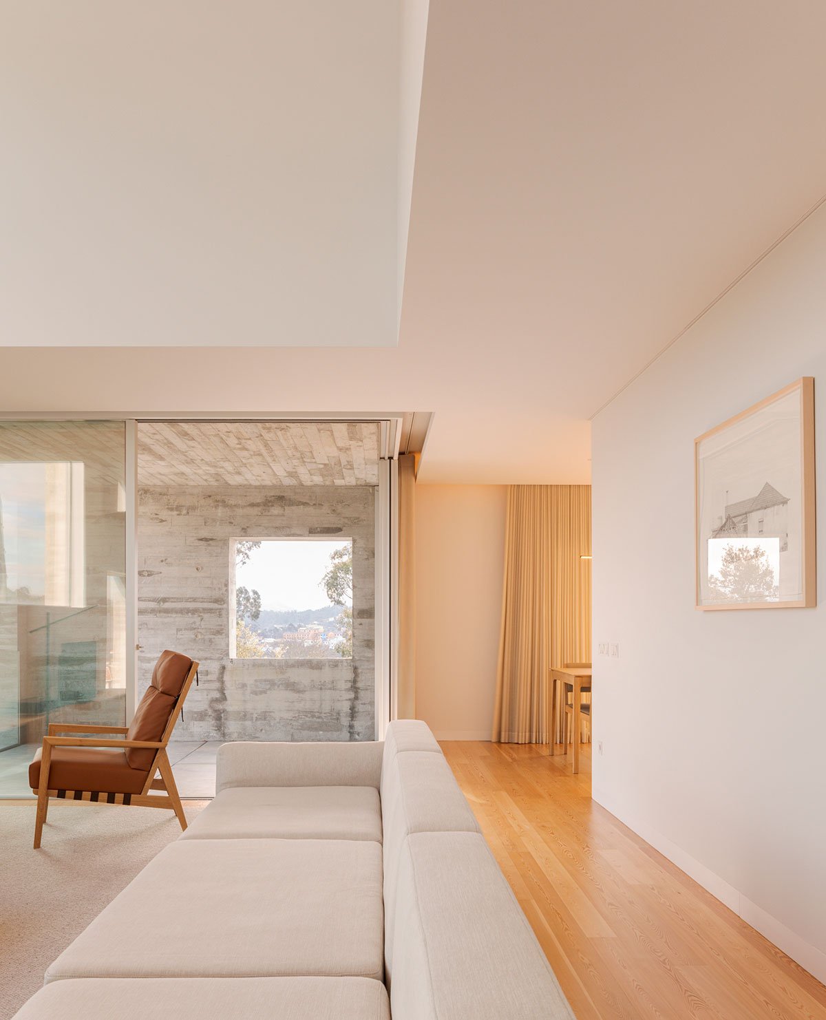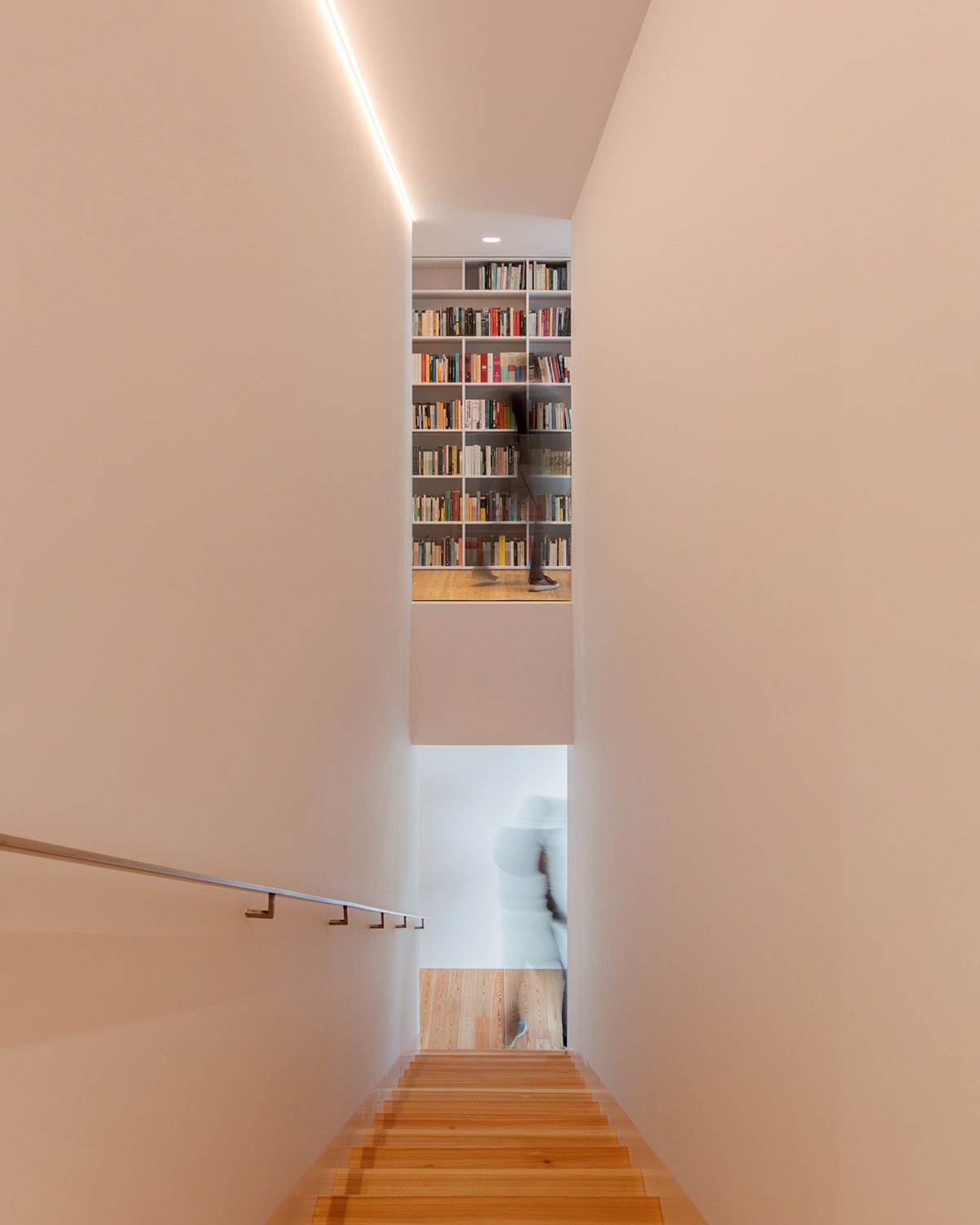 Each space has a critical look at a particular point in the landscape, allowing users different views of the same landscape depending on the position and size of the window they are looking at. On the outside, the use of exposed concrete emphasizes the idea of solidity that the designers wanted to express in contrast to the light wood and white walls of the interior that express lightness. It is also in this dichotomy that the house relates to its neighbours and with those who inhabit it and walk through its spaces.