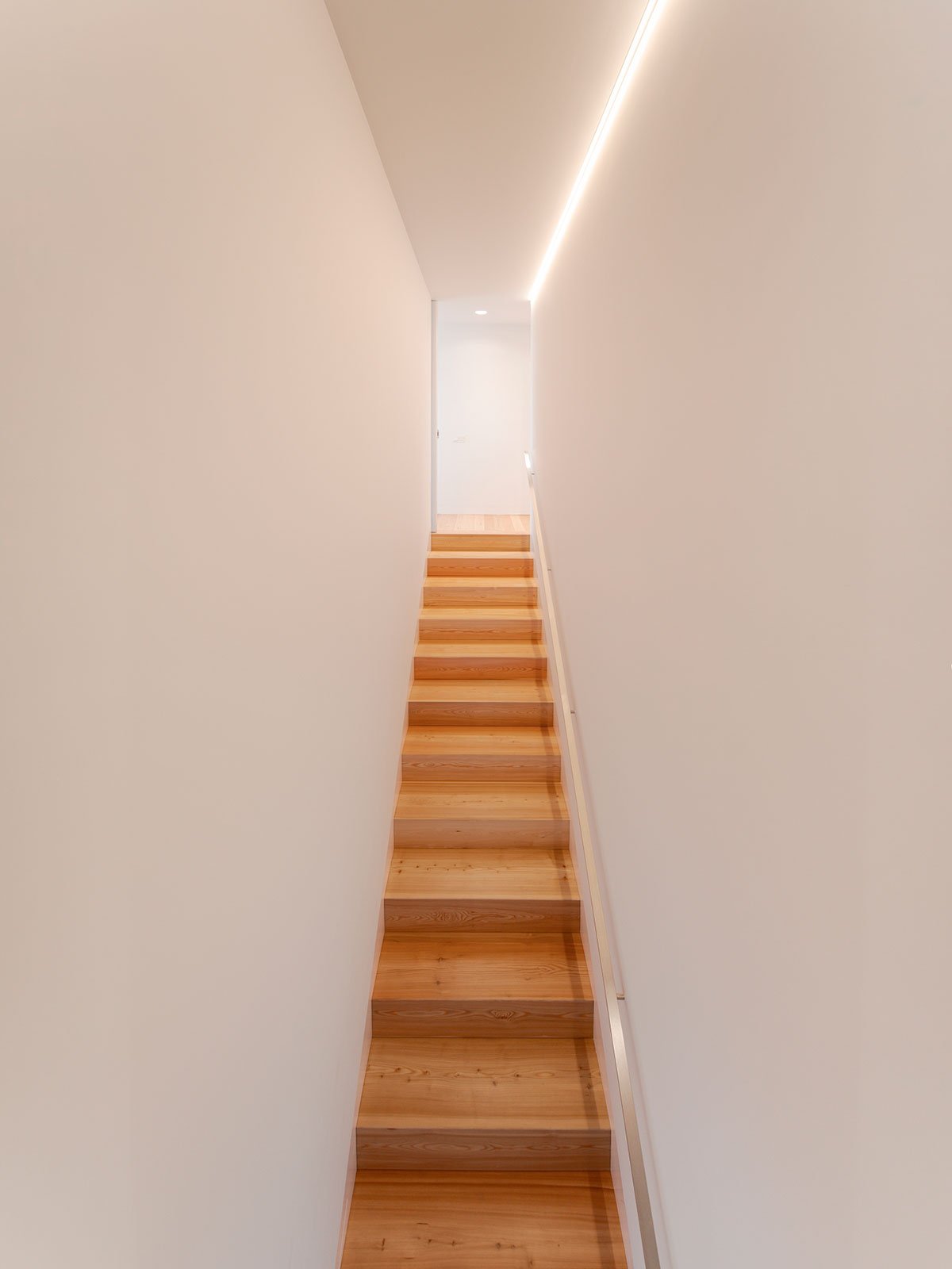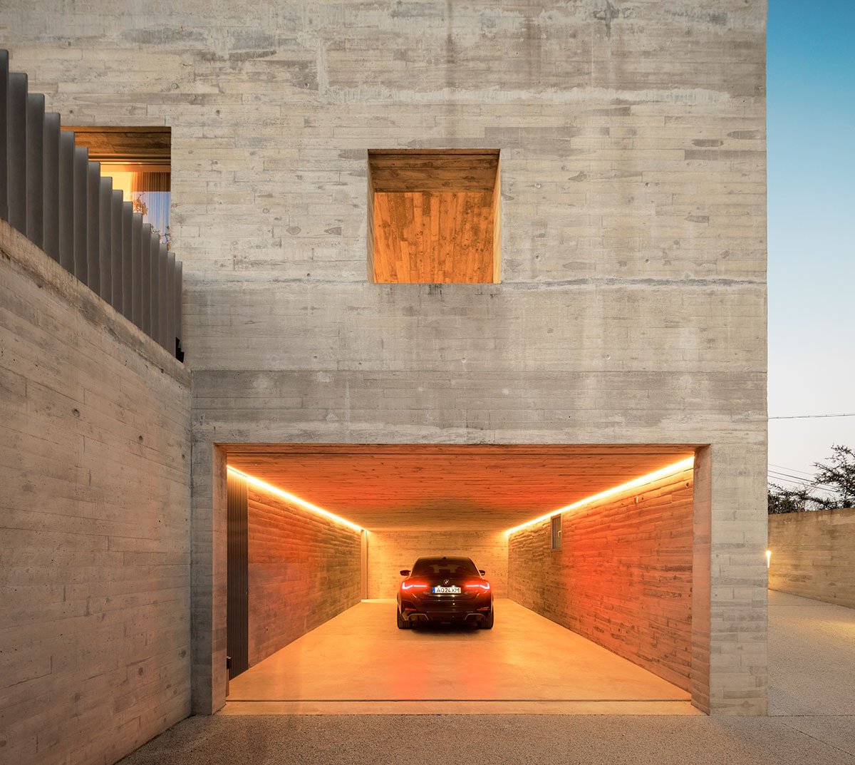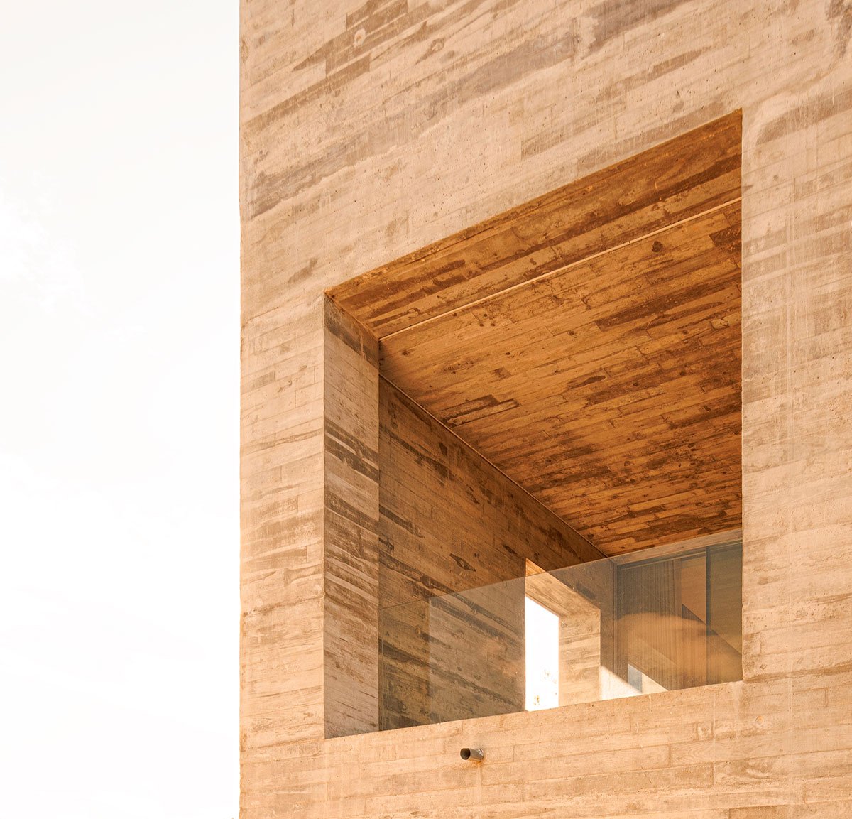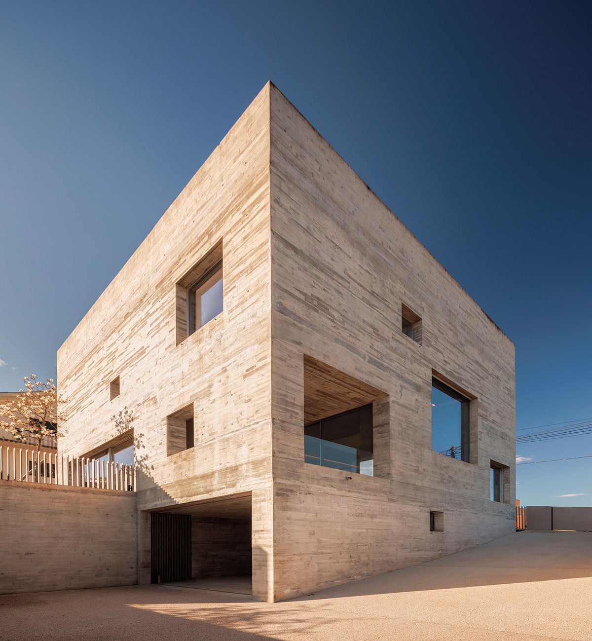 Each space has a critical look at a particular point in the landscape, allowing users different views of the same landscape depending on the position and size of the window they are looking at. On the outside, the use of exposed concrete emphasizes the idea of solidity that the designers wanted to express in contrast to the light wood and white walls of the interior that express lightness. It is also in this dichotomy that the house relates to its neighbours and with those who inhabit it and walk through its spaces.