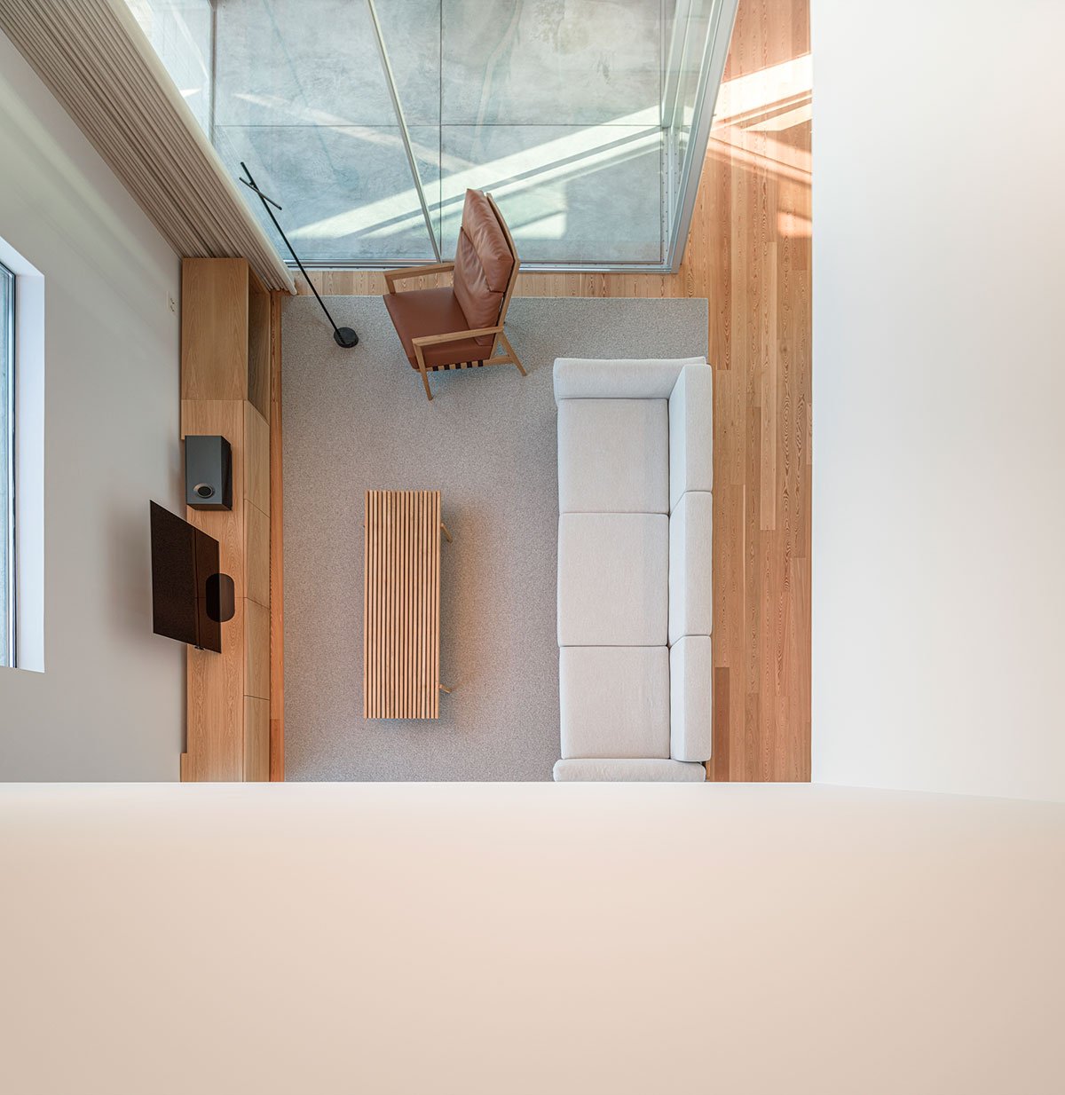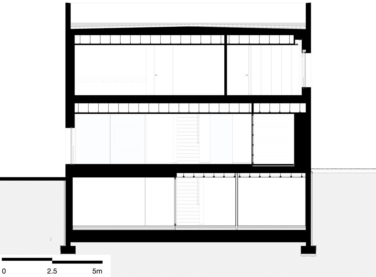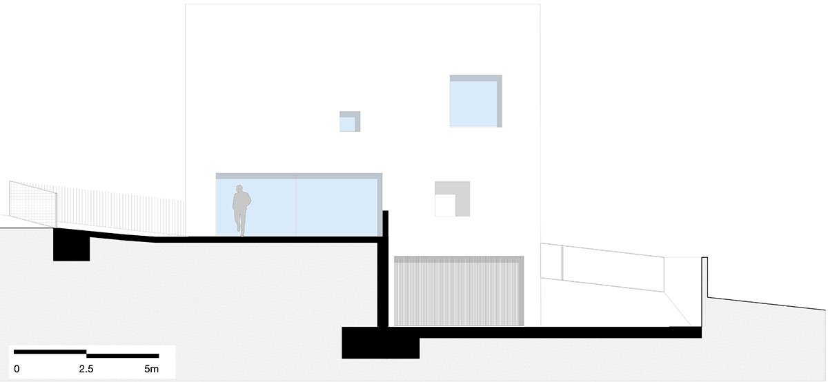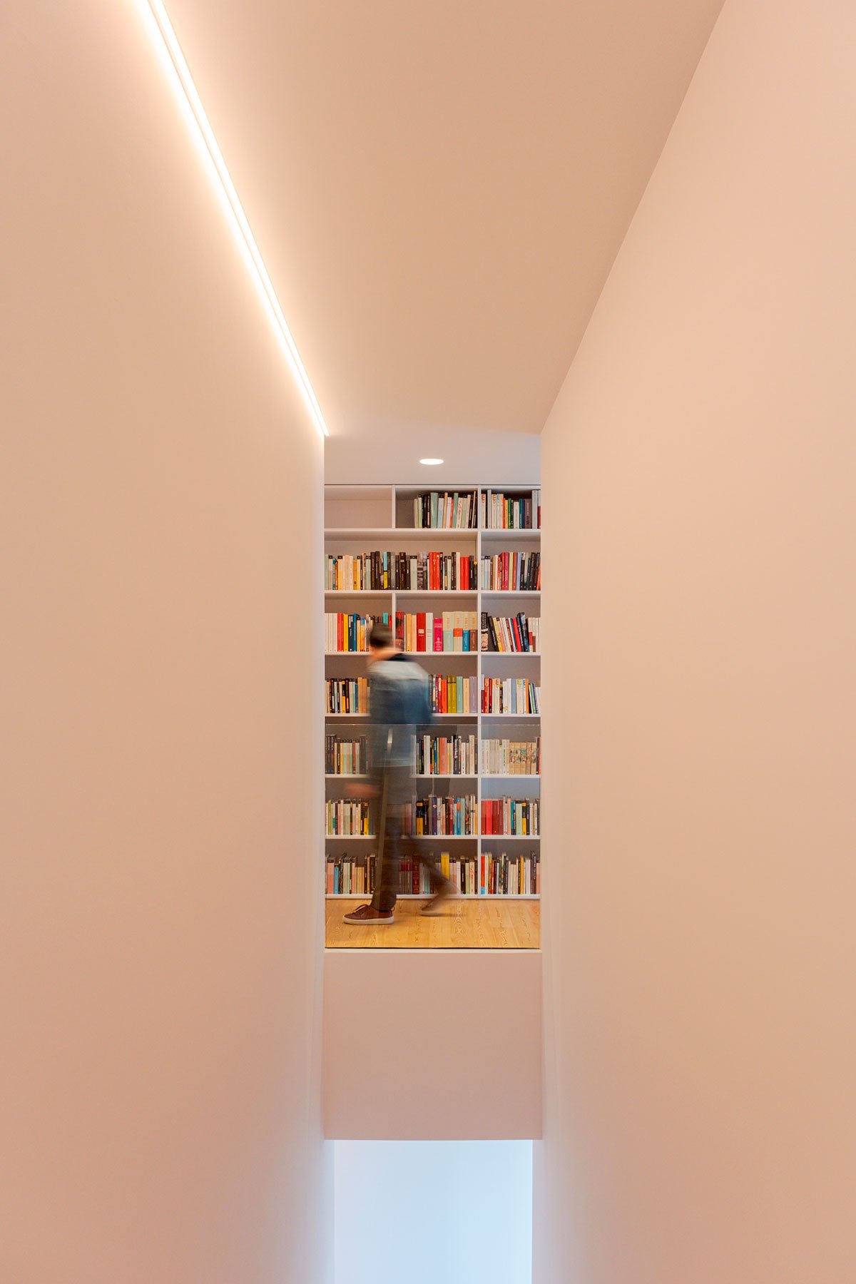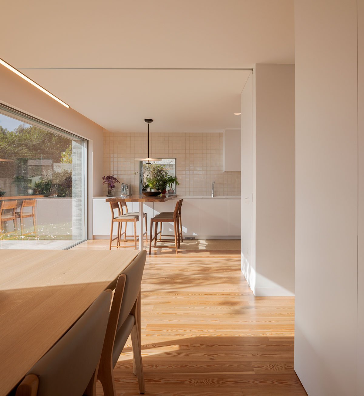 Each space has a critical look at a particular point in the landscape, allowing users different views of the same landscape depending on the position and size of the window they are looking at. On the outside, the use of exposed concrete emphasizes the idea of solidity that the designers wanted to express in contrast to the light wood and white walls of the interior that express lightness. It is also in this dichotomy that the house relates to its neighbours and with those who inhabit it and walk through its spaces.
