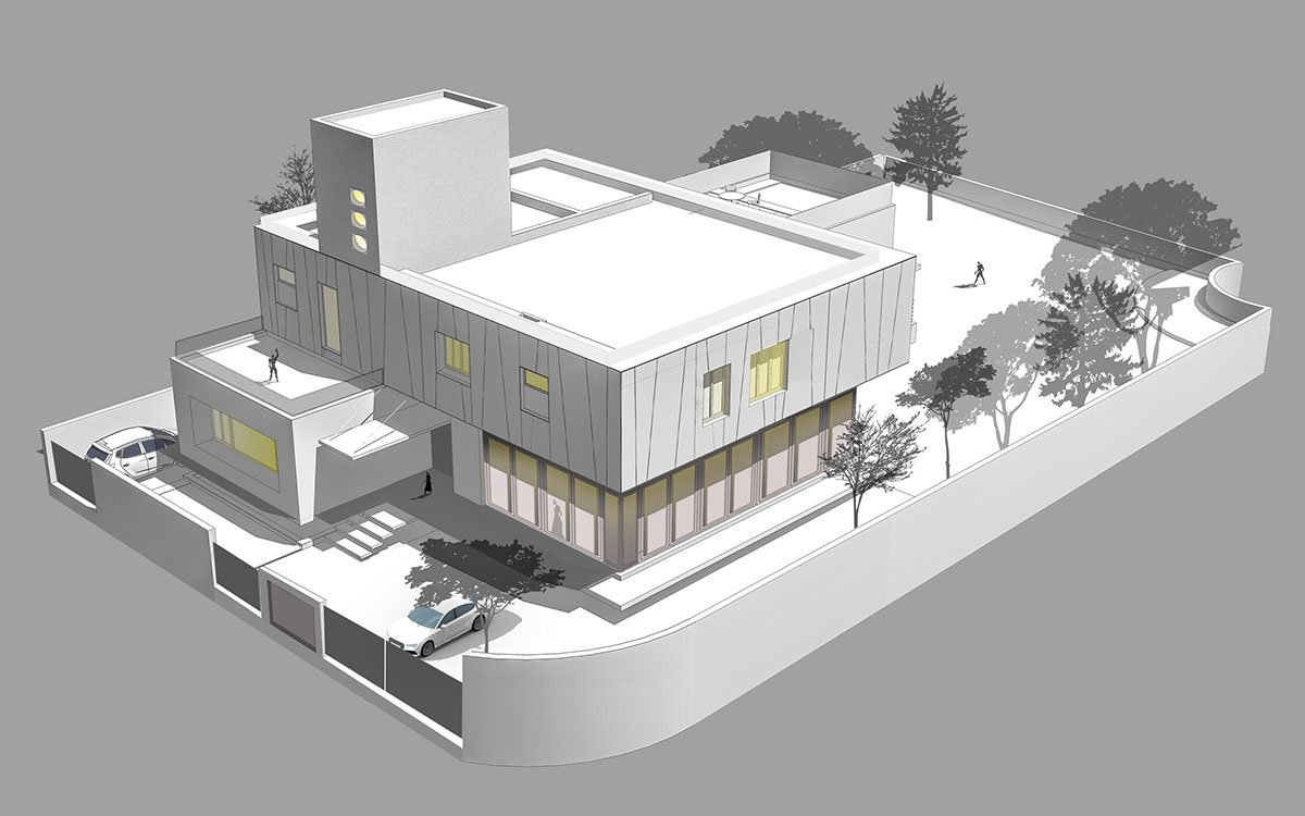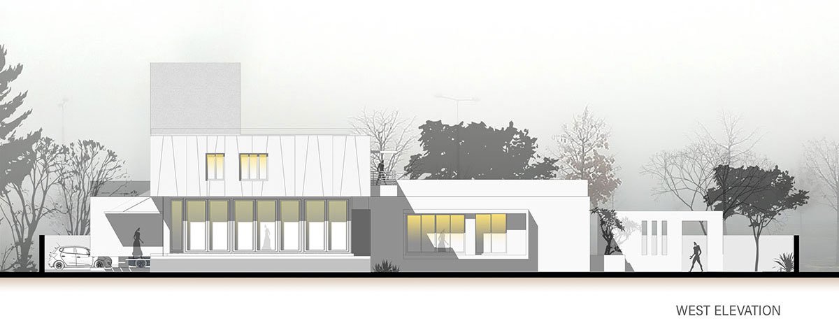 [Text as submiited by architect] A home is where you are comfortable expressing your emotions, unlike some luxury hotel. A house with its free-flowing spaces & muted colours allows you to be yourself. While assigning us the remodelling of their bungalow, the clients were very clear to have a no-fuss house with simple and clean spaces and fewer colours. We decided to attend minimum civil changes and enhance the exteriors and the interior spaces to render comfort and ease in the living of the clients. The form of the bungalow was clean & modern with two cuboid juxtaposed perpendiculars to one above the other. We deliberately treated both floors differently. The ground mass is white and the upper mass painted dark Grey with vertical texture bands.