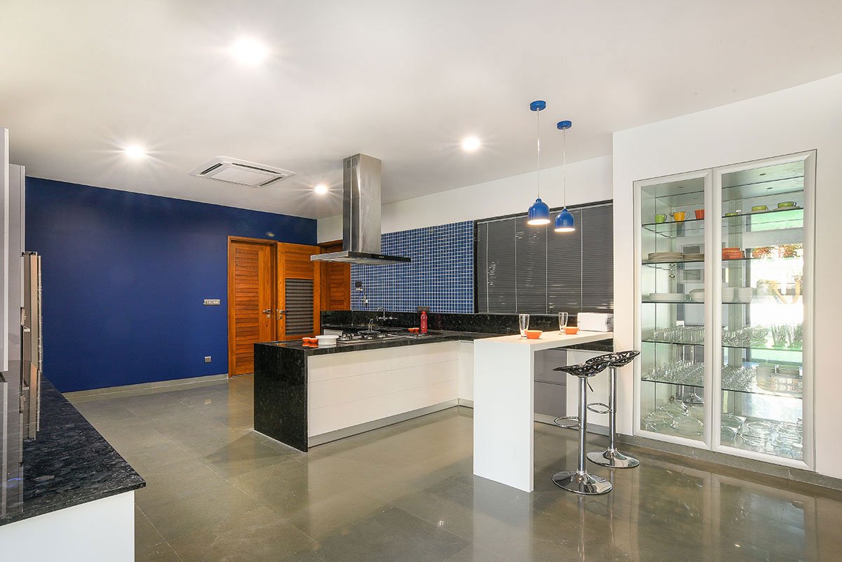 The ideas while designing the kitchen were utilizing maximum storage space and keep it open also the dining area was relocated in a way it can place in connection to the kitchen and also have an outdoor view of the landscape.