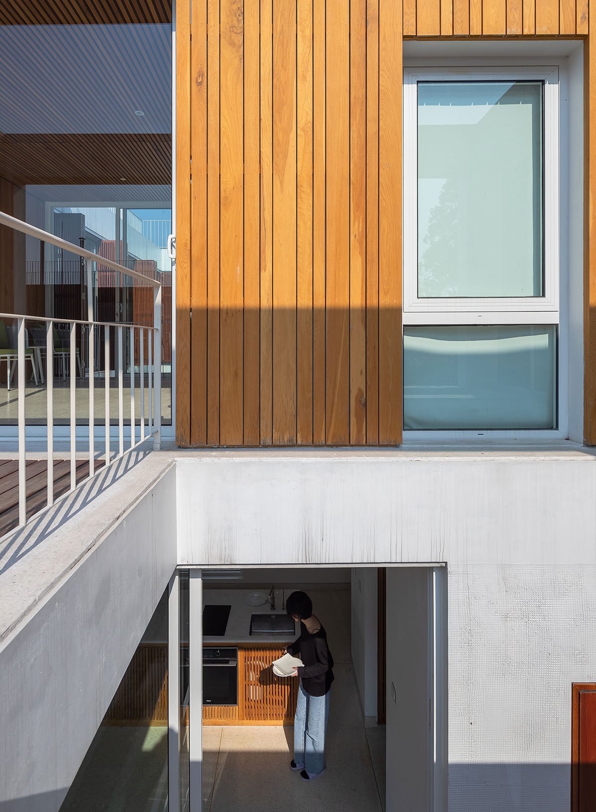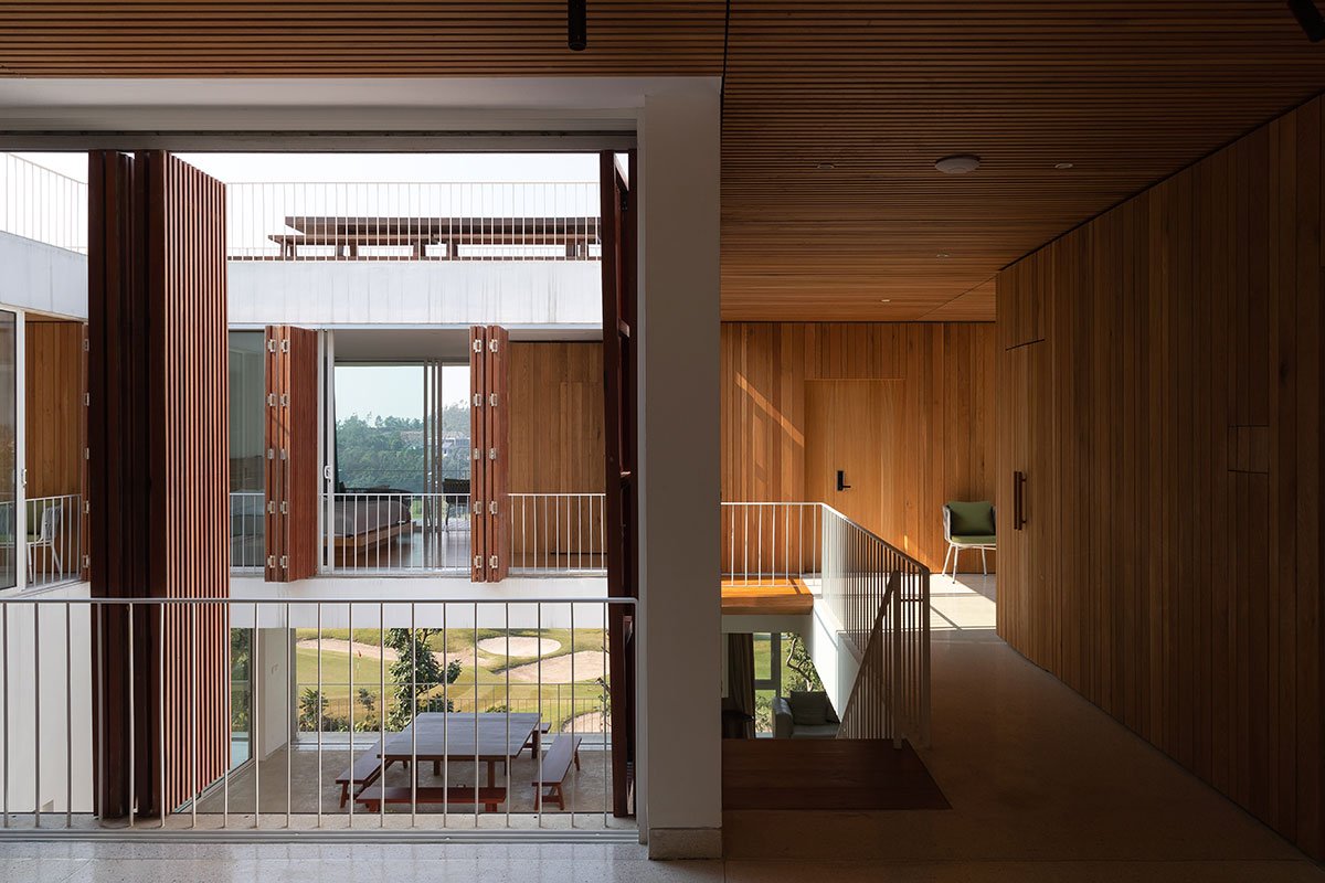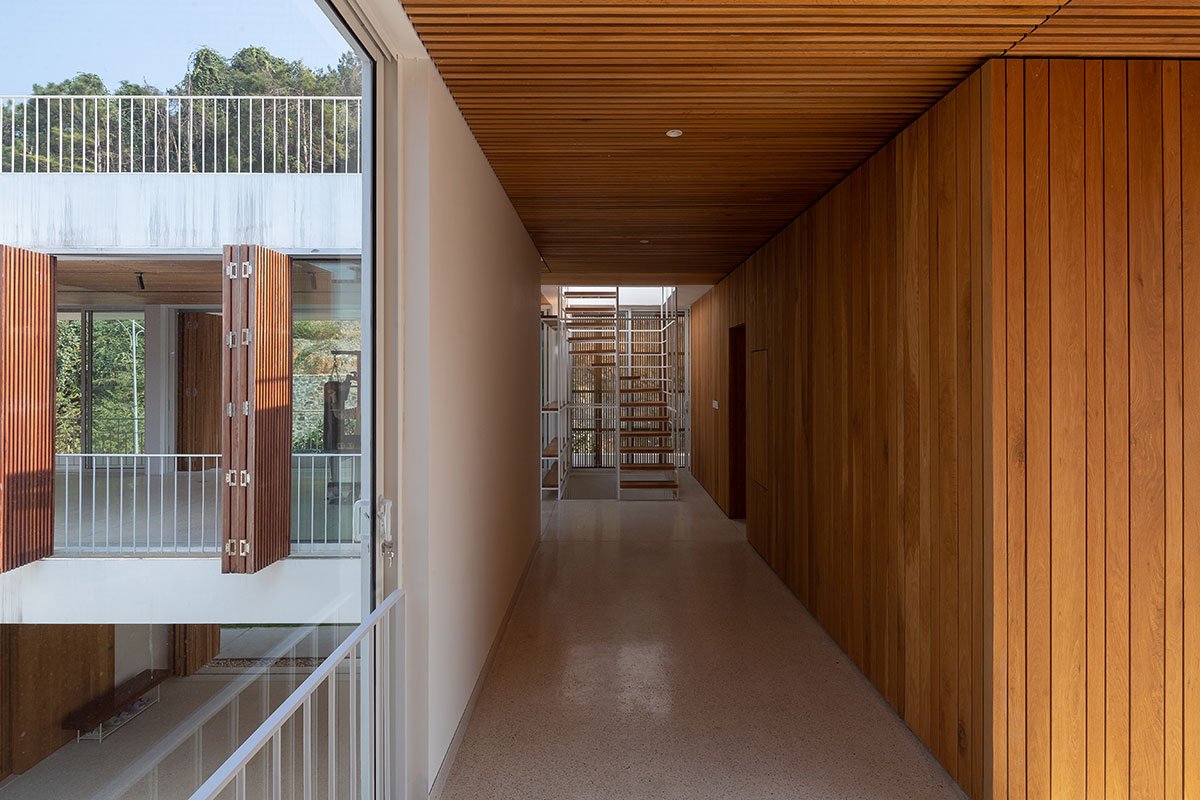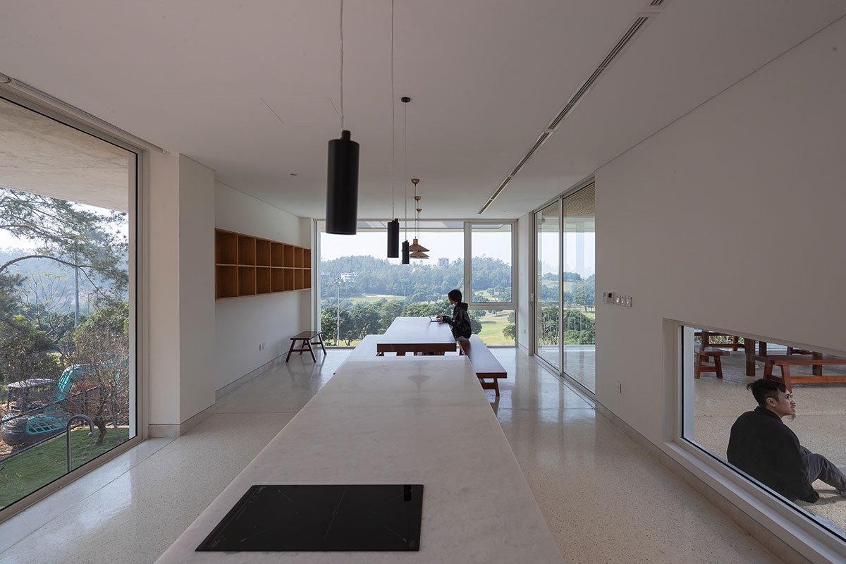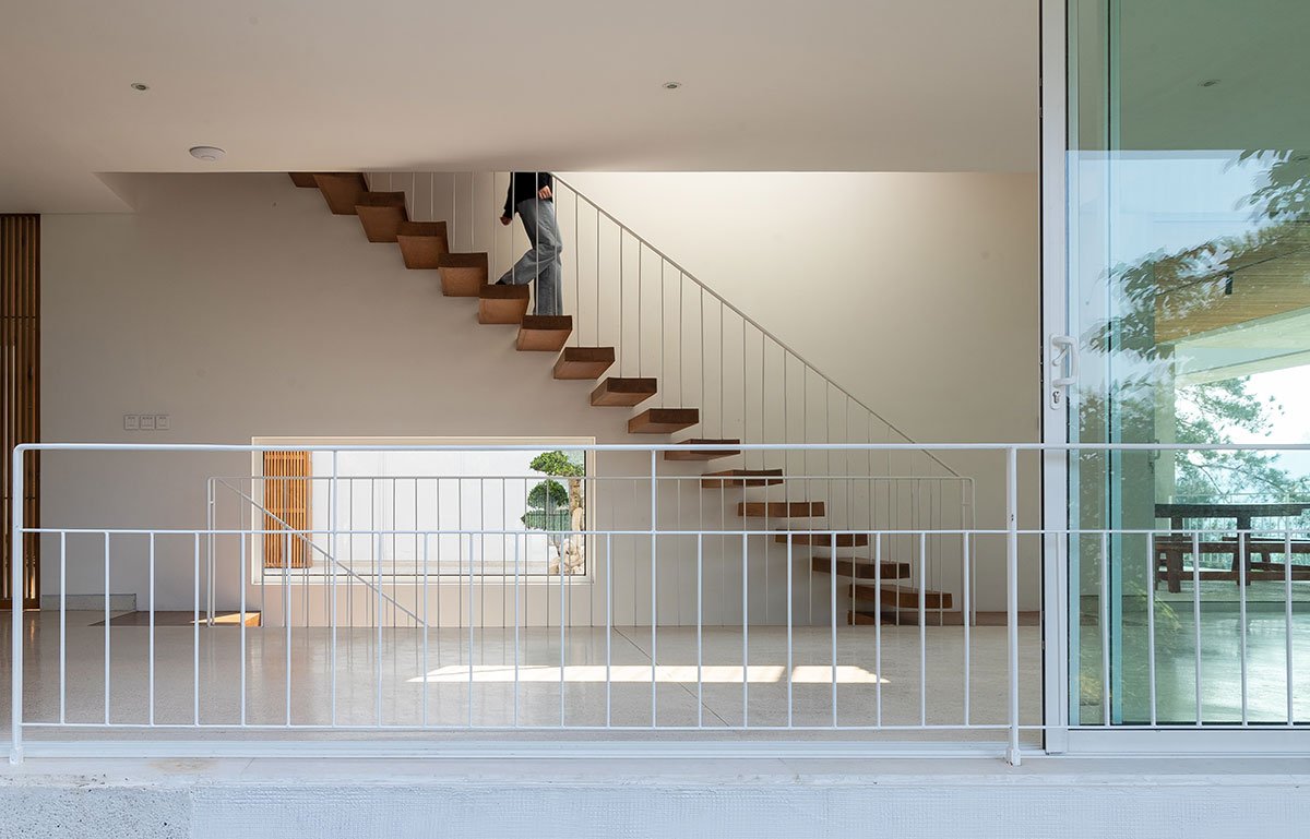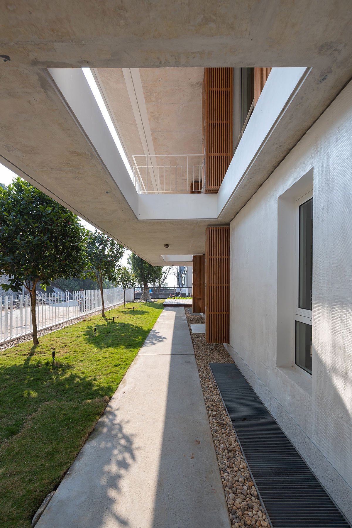 The long horizontal terraces are perforated to reduce the span avoiding the feeling of being too long and to create vertical view. These terraces also create the buffer space or blurred boundary between the indoor space and the outside scenery.