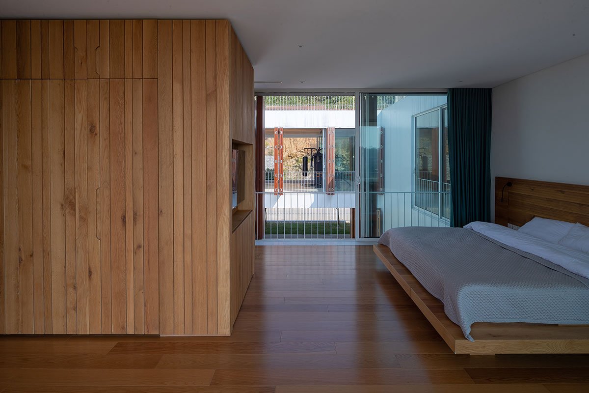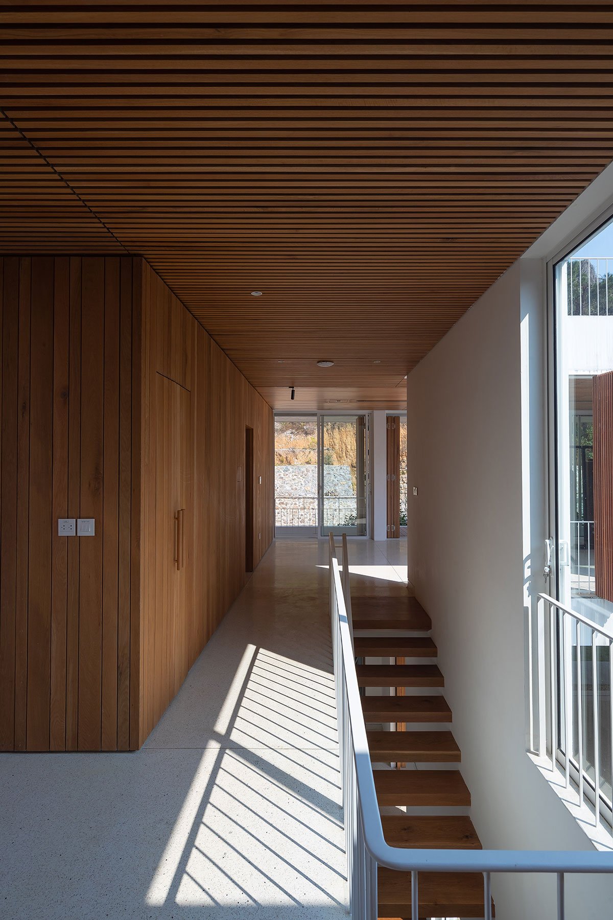 The entrance of the house is from the foot of the mountain, the architects designed the main hall on the ground floor, the front and the rear to be extended and connected to the courtyard, which helps the house not hide the valley landscape for everyone could see from the main road.