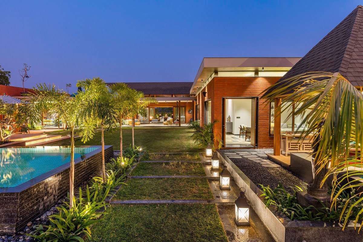 [Text submitted by the Architect] ‘Tamara villa’ is a weekend home designed for a family of four on the outskirts of Ahmedabad, India. The project exemplifies an idiosyncratic oeuvre that ranges from architecture, through interior, to landscape. Tamara translates to ‘a blooming lotus flower’; it signifies purity, enlightenment and self-regeneration. Keeping this in mind, though it was a family house, we made sure that each individual should get their own personal niche within. The plot size is 65,900sq.ft. while the construction is only of 6250sq.ft. This ratio of the built-unbuilt, gave us an opportunity to explore landscape as a medium to enhance the charm and beauty of the project. The villa has a touch of tropical experience to ideate as place for rejuvenation and relaxation. The idea was to feel connected to outdoors and create a living within a garden typology.