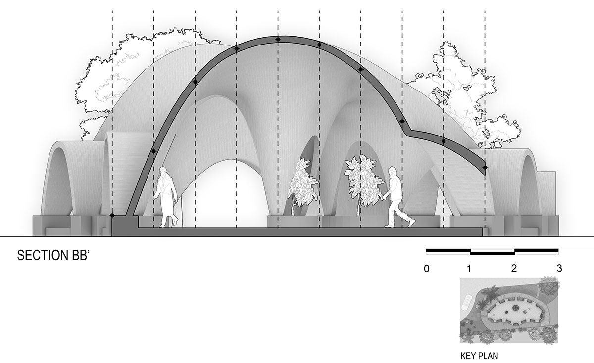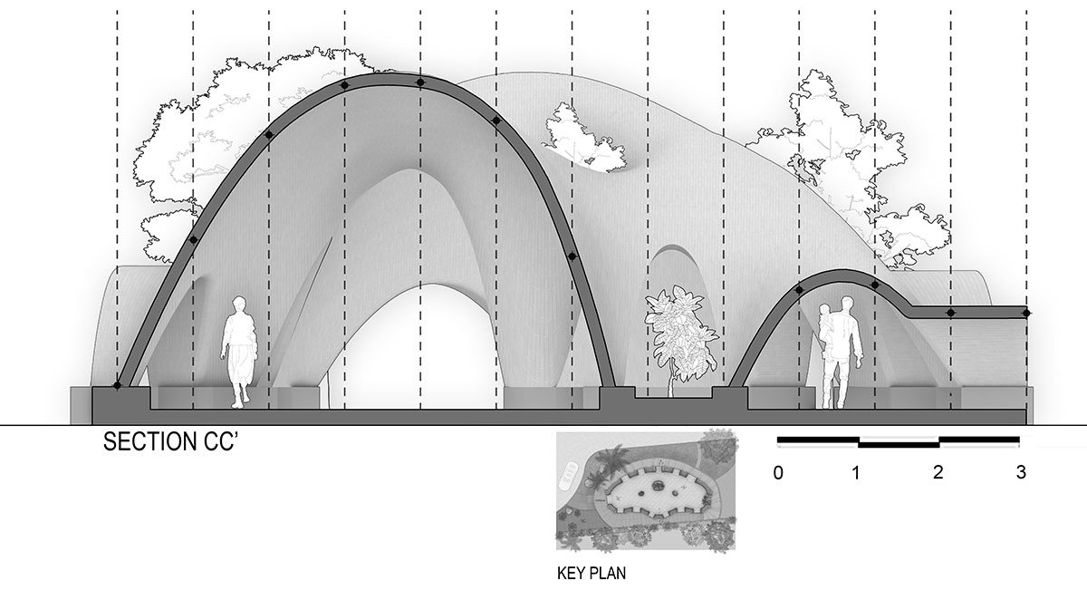 [Text as submitted by architect] “TARANG” is presently the largest terracotta brick tile arched vault structure in India and one of its kind, without beams, reinforcement, or any shuttering system.