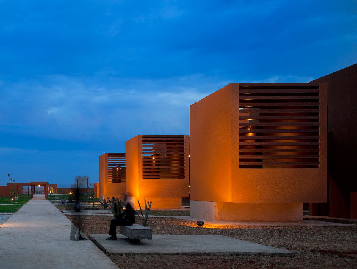 The starting point was to provide a strong architecture, contemporary but inspired by the context in which it occurs. The challenge was to recreate a certain mood, a certain scale with modern tools and architectural vocabulary.Thus, the architecture is voluntarily massive, powerful and plays with the contrast between interior and exterior. The various buildings are organized along a north-south axis through a partly covered path, and are organized on L-forms or indoor gardens.