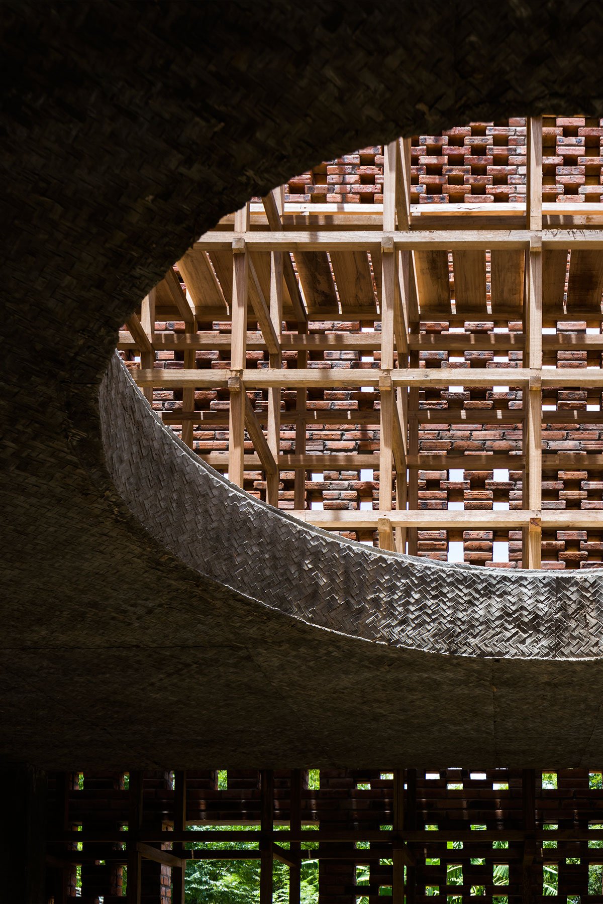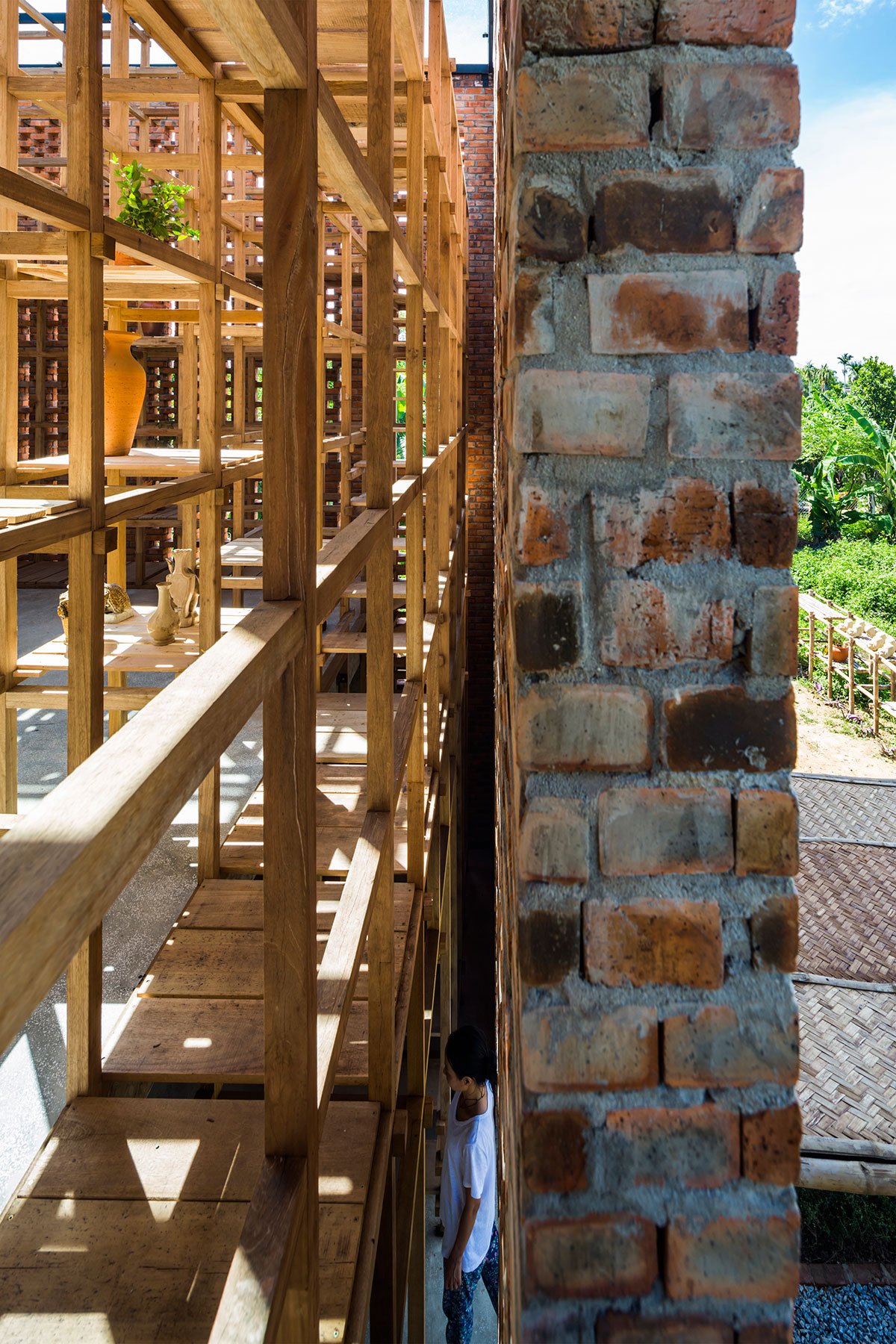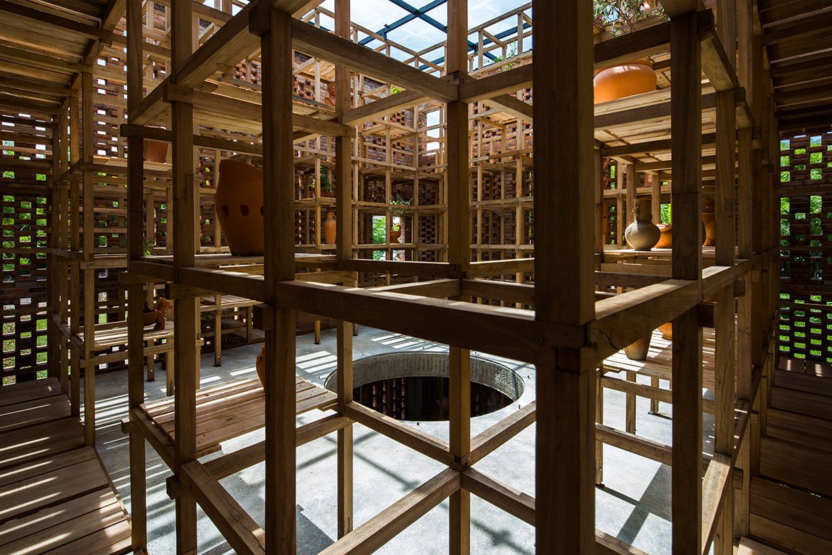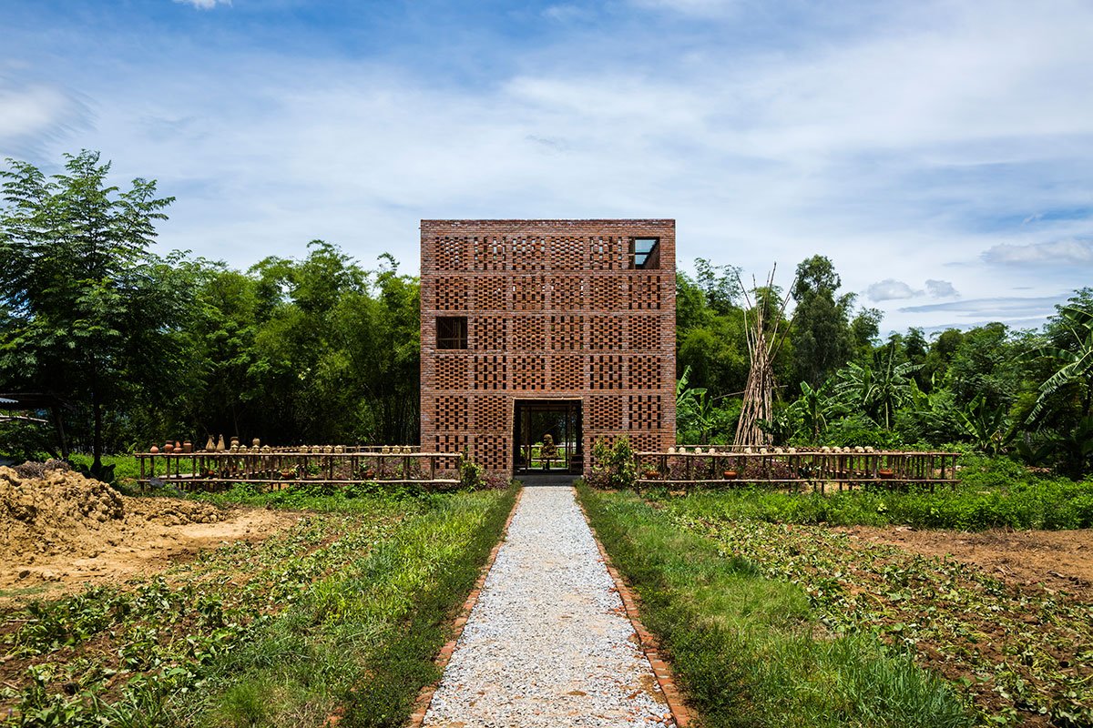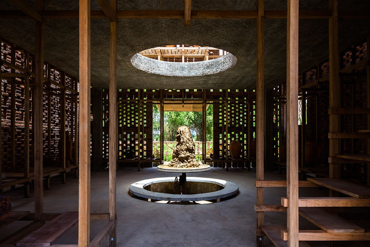 The outermost layer of the studio is made of clay-solid brick, which reminds people of Vietnam’s traditional furnace. The studio also carries the characteristics of Champa culture, as the area was part of Tra Kieu, the Champa Kingdom capital from the 4th to the 7th centuries.