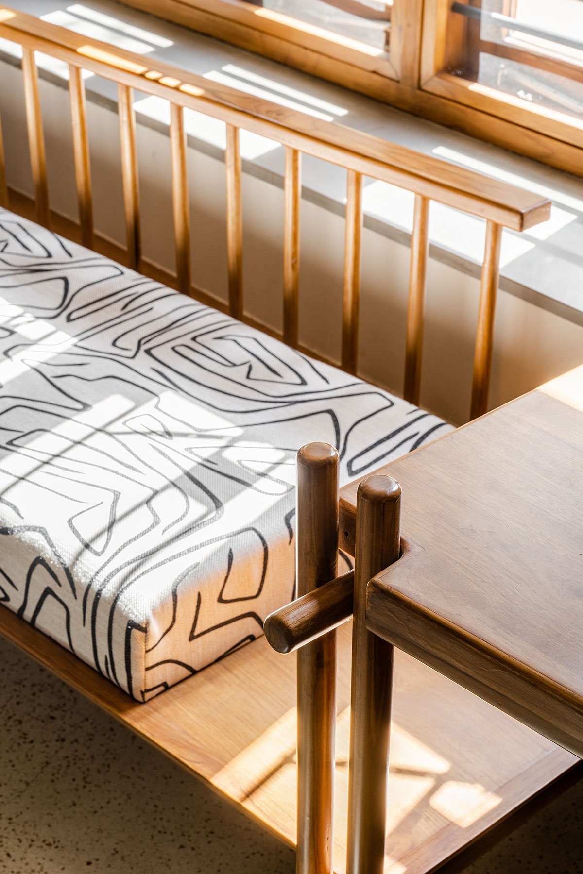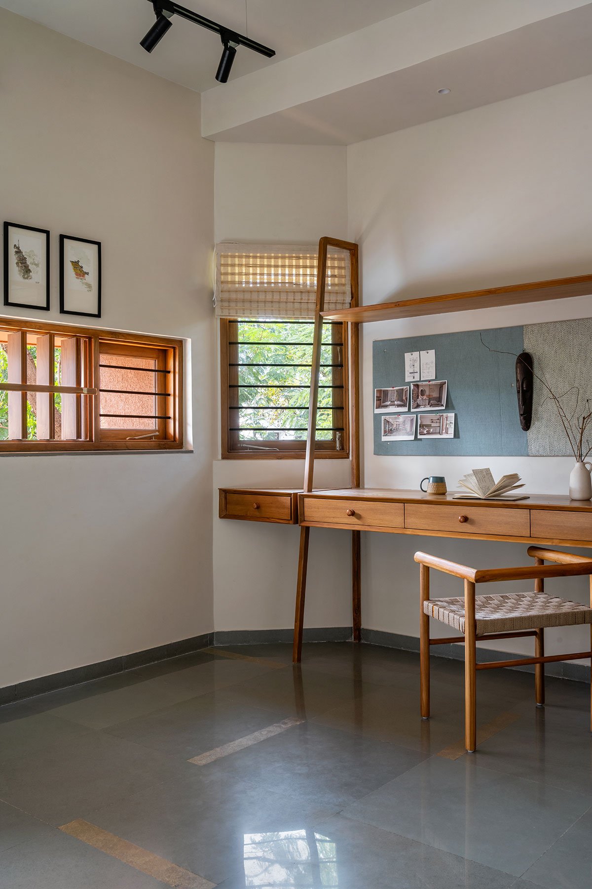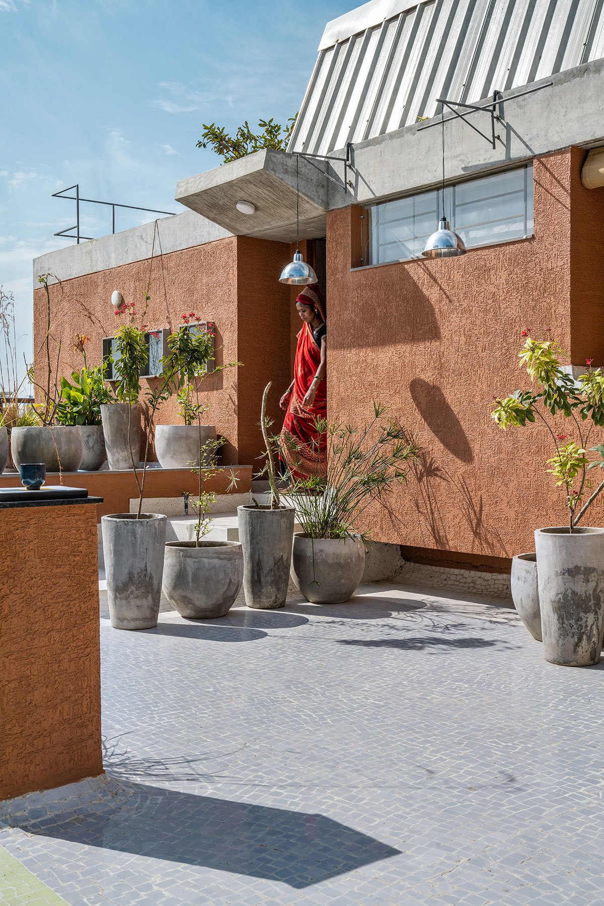 Keeping in mind such a brief the architecture responds to a variety of scales of spaces where one can unwind. This house thus responds to the climate and the life-style of the inhabitants. Use of kota stone and terrazzo for flooring, maximum wooden windows and inbuilt seatings was to keep the home timeless and user friendly.