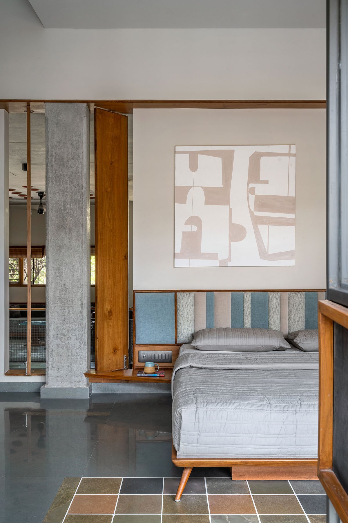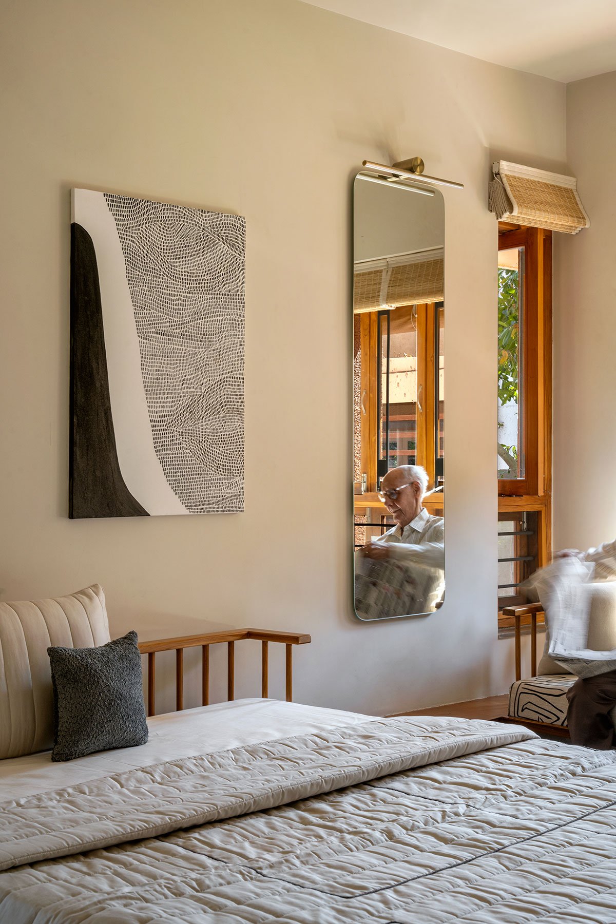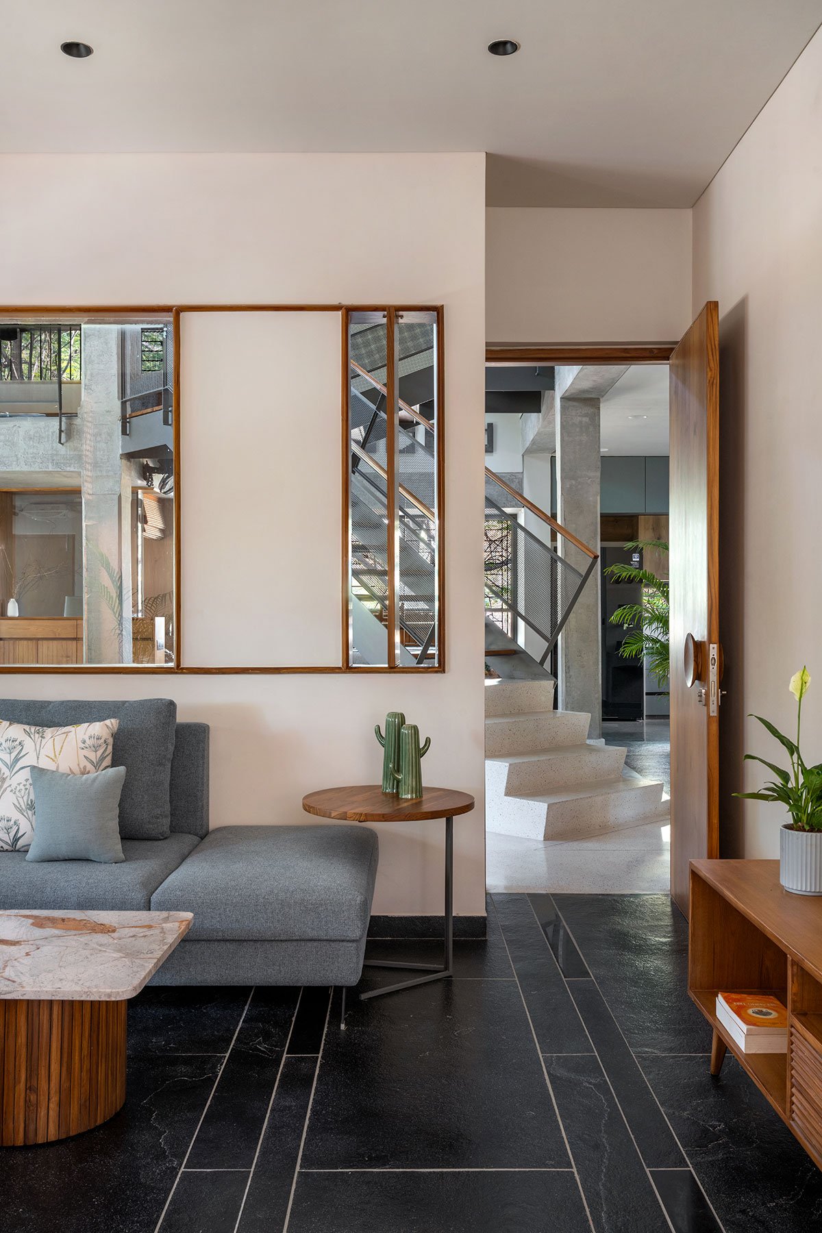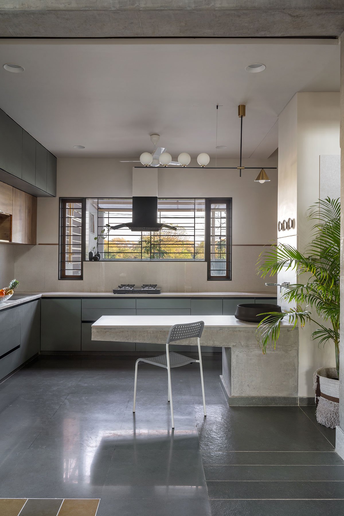 Keeping in mind such a brief the architecture responds to a variety of scales of spaces where one can unwind. This house thus responds to the climate and the life-style of the inhabitants. Use of kota stone and terrazzo for flooring, maximum wooden windows and inbuilt seatings was to keep the home timeless and user friendly.