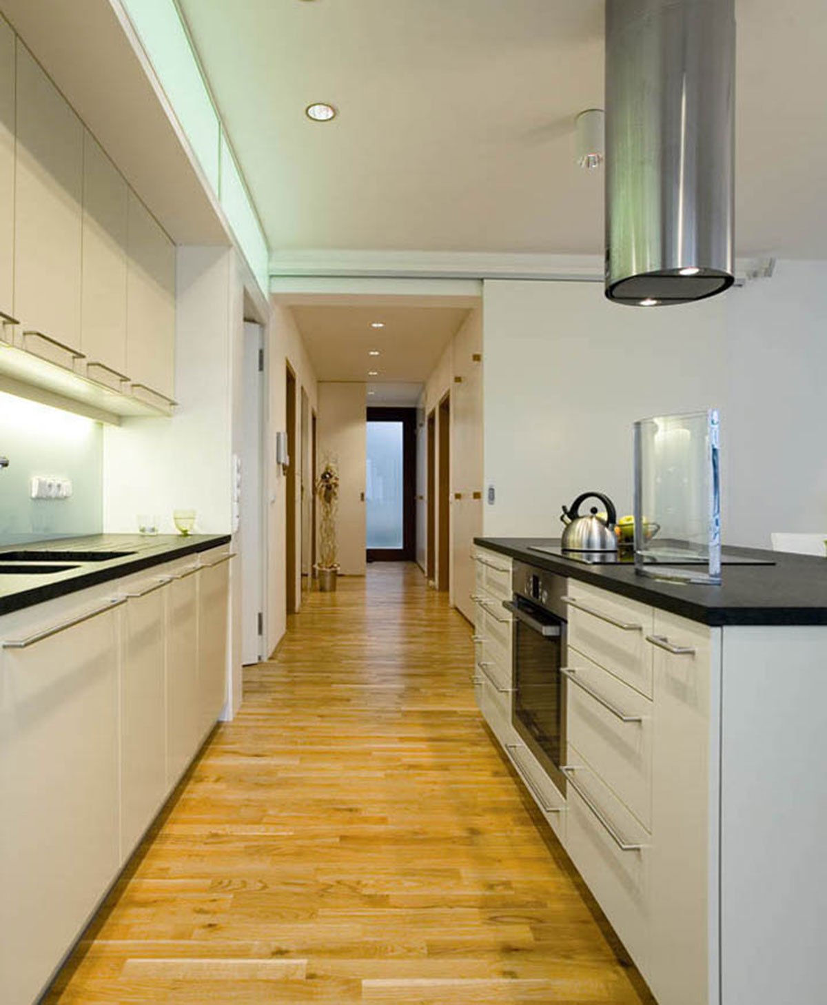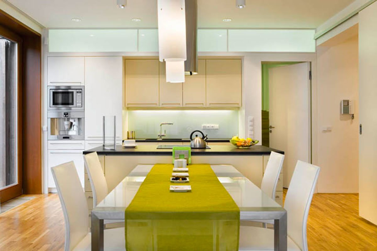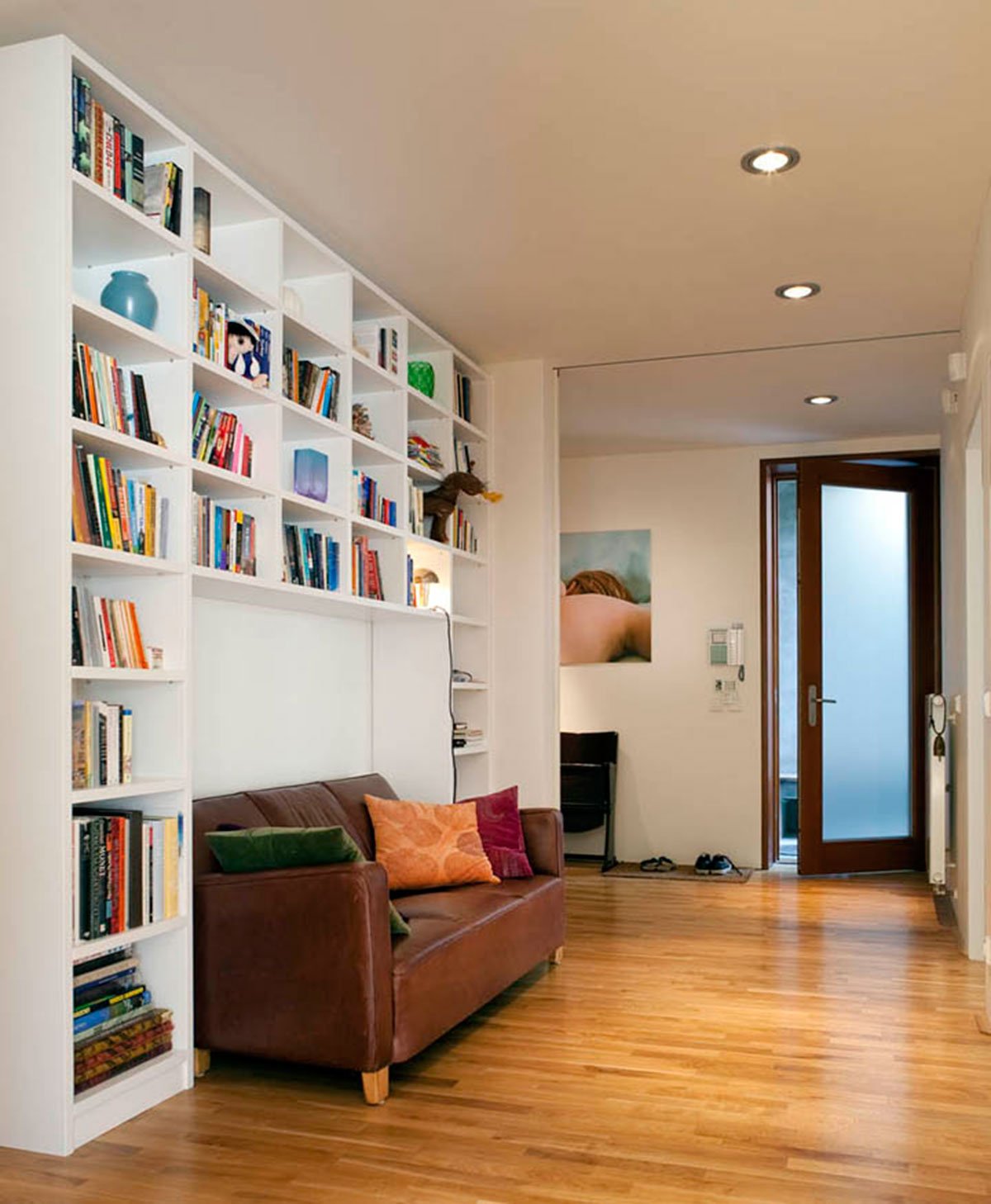 The house is divided into 4 apartments, of which one is an upper maisonette. There is a garage for eight cars, the entry lobby and small cellars for each apartment on the street level floor. The lift moves through the house and opens directly into each apartment; the stairway is located outside the house.