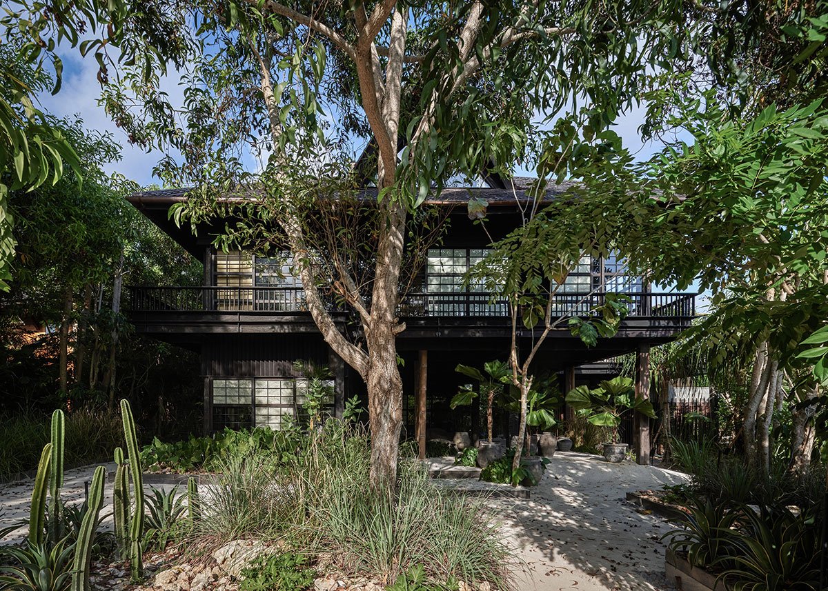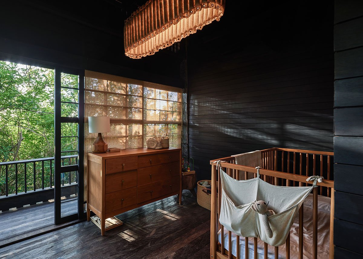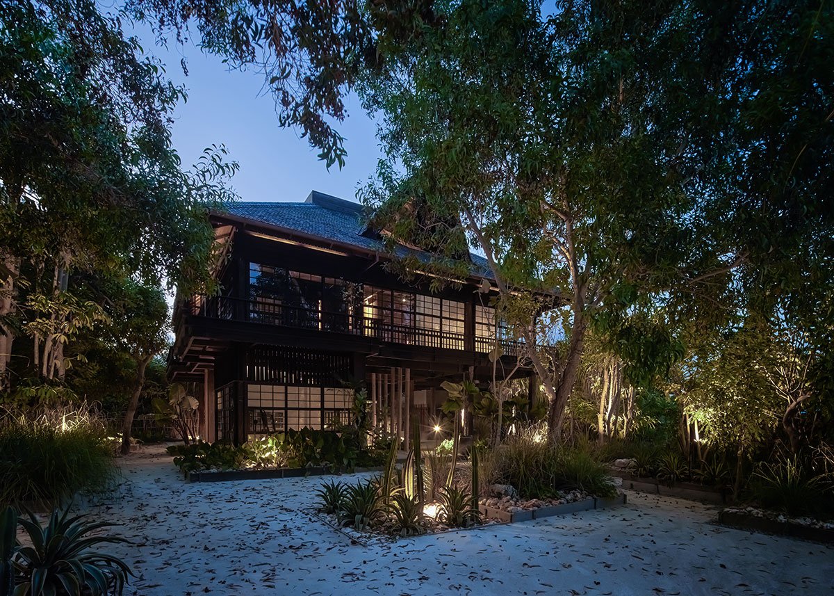 Very little direct lighting was used to emphasise an atmosphere of tranquillity and rest. Pendant lamps designed of banana fibre paper become the objects of special attention within the otherwise simplistically furnished building.