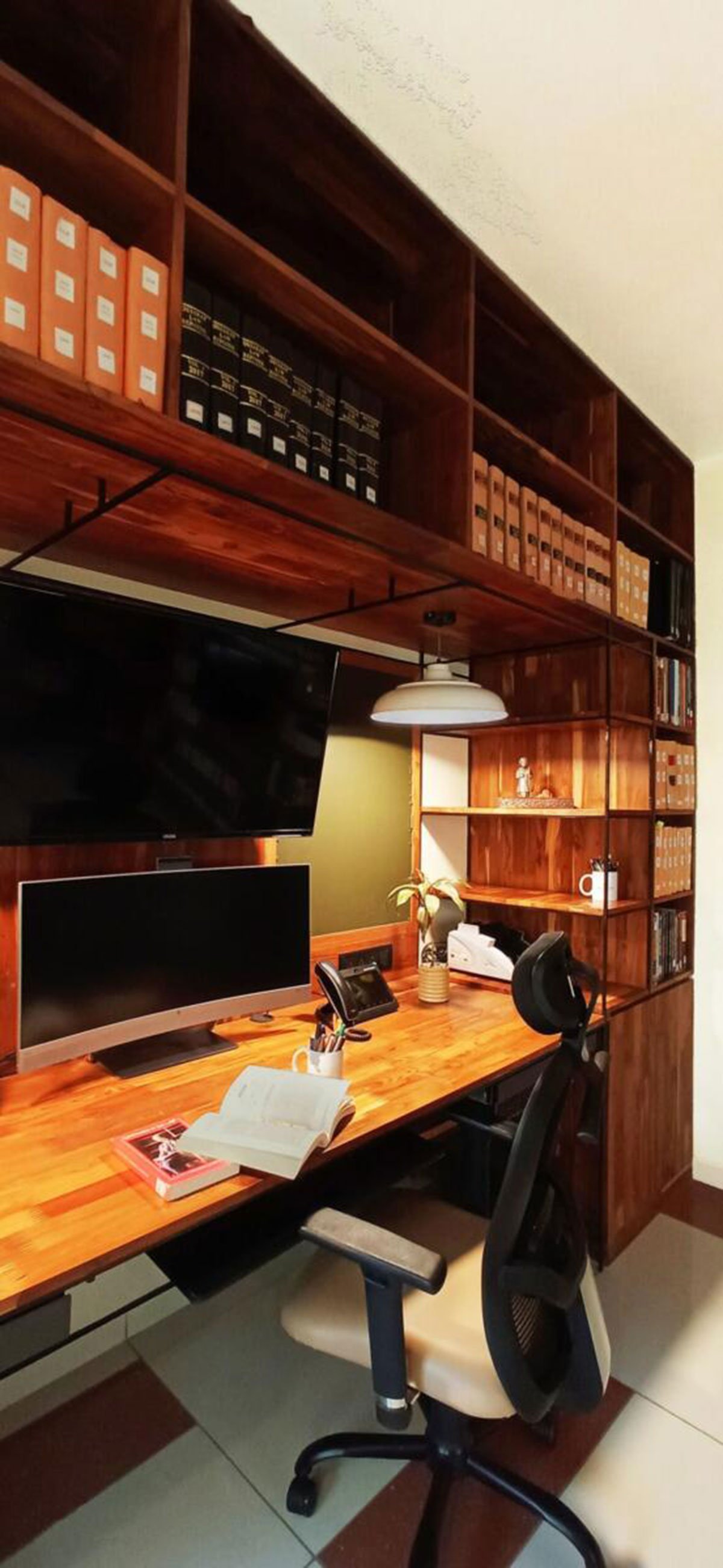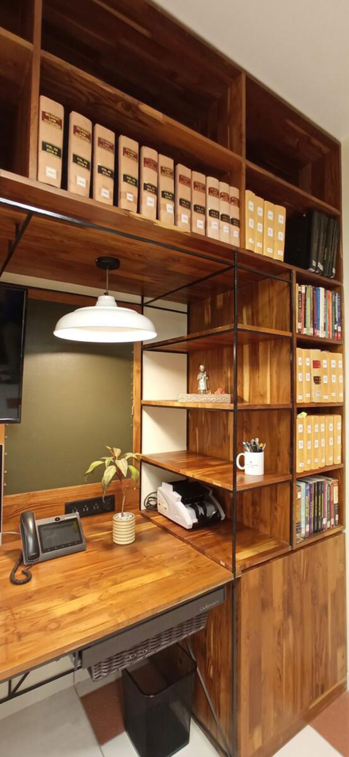 [Text submitted by architect] The Lawyer’s office is one of the quickest projects that we have executed where work on-site went hand in hand with the drawings on the drawing board all through the process. The idea to use metal as a support system for furniture was one of the first defining ones which carried on throughout as a design language for the office.