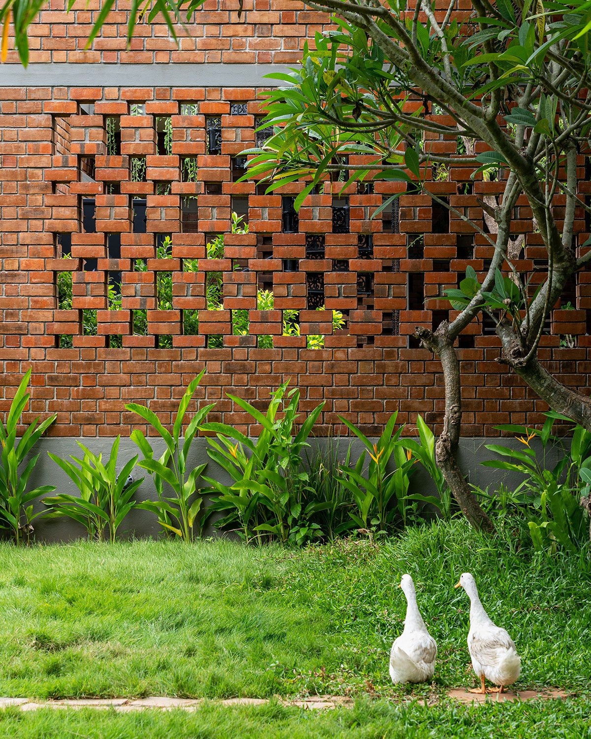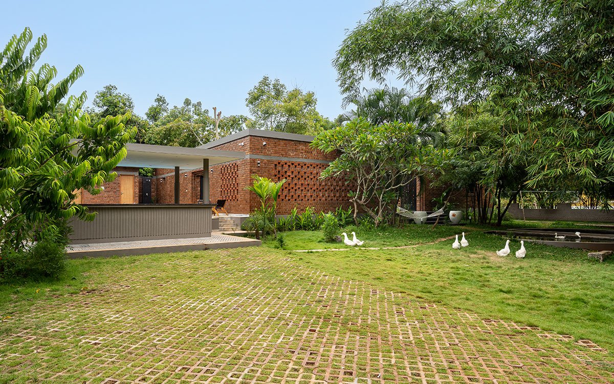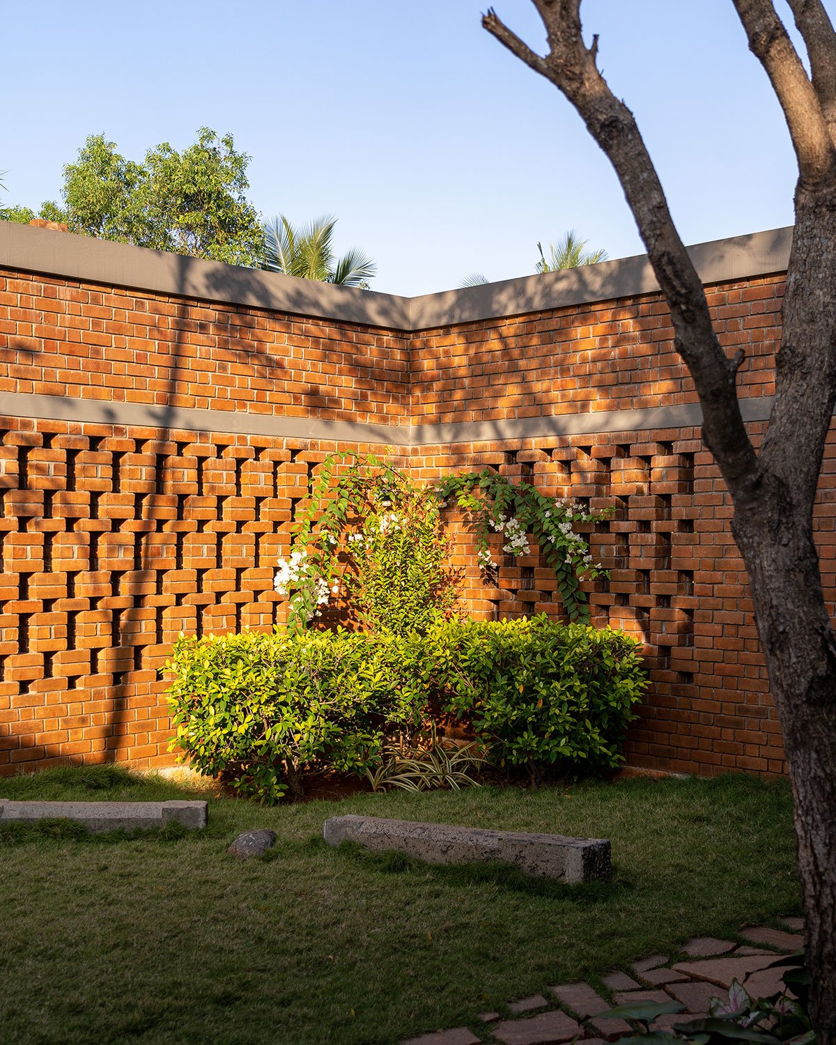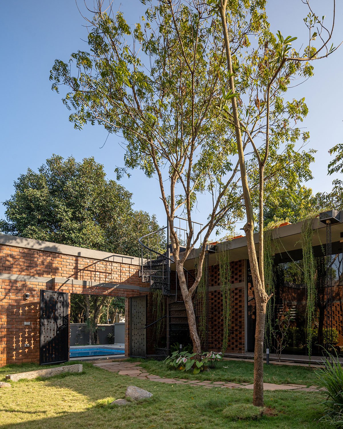 Excerpt: The Brick Abode designed by Architecture_Interspace is a residence designed to reveal and glorify the surrounding context and the local Indo-French architecture. The L-shaped house surrounds a rectangular courtyard in such a way that all rooms overlook the courtyard. This form provides the openness for the living and entertainment spaces and ensures privacy for the bedrooms.