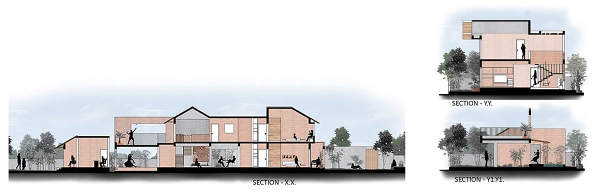 There is a dynamic play of light and volumes when one enters the house – the Jali works, the louvered gable and the skylight helps achieve this. The skylight, create an ever-changing pattern of light throughout the day which gives the inmates a unique experience there at different times of the day.