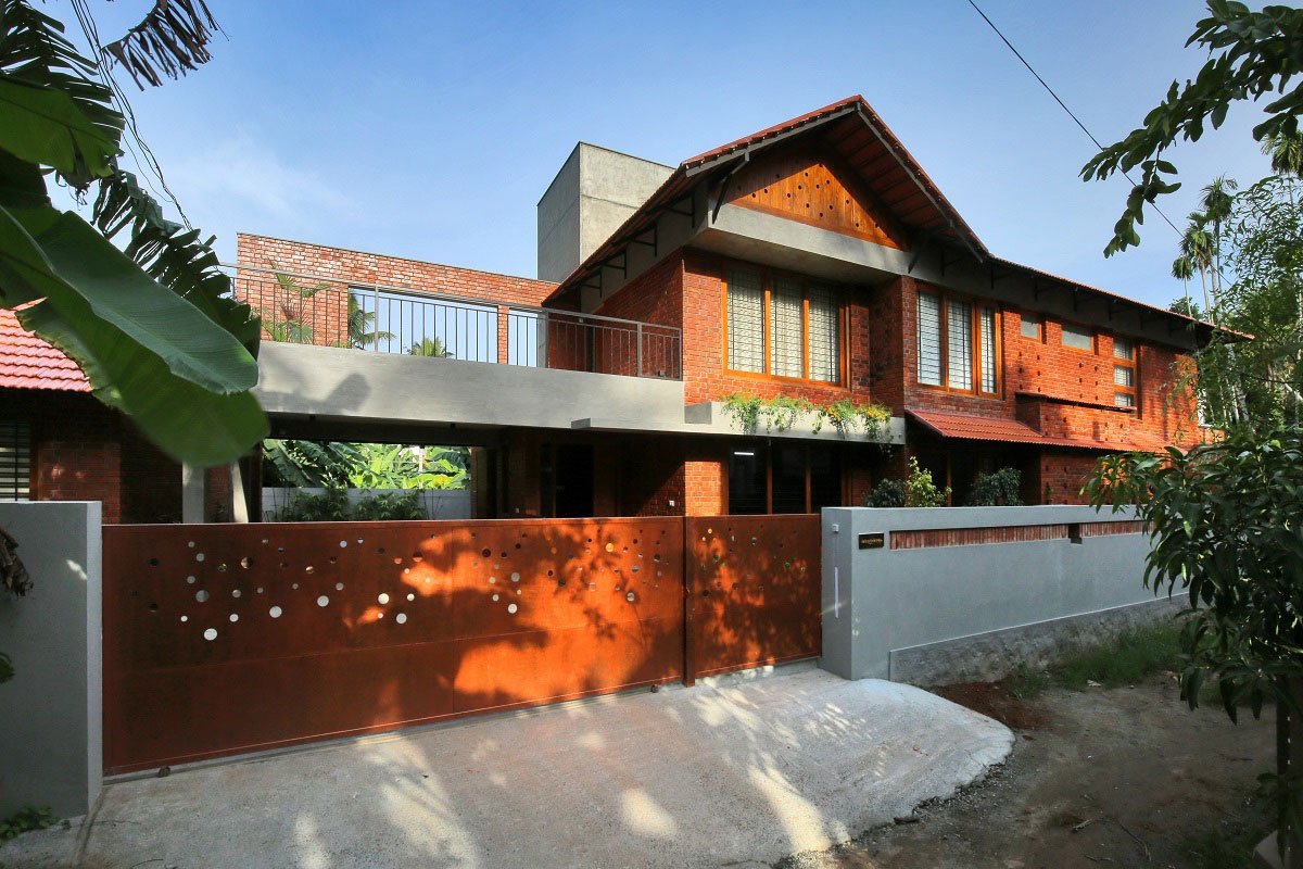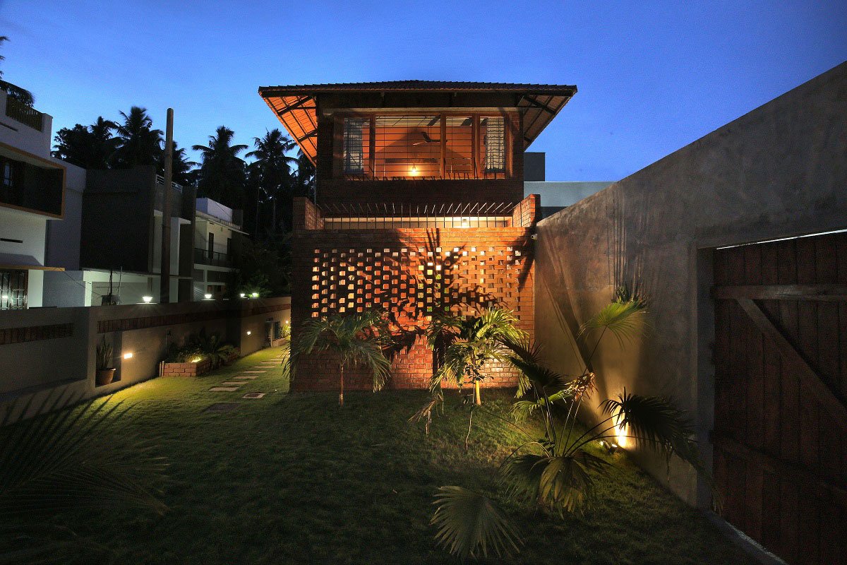 [Text submitted by the Architect] Located on a long and irregularly narrow site in Trivandrum with its longer side facing west, The BRICKHAUS, Keralam is designed to be both a place of respite and exhilaration for the Clients – a young family both Doctors, and their two kids. The lady of the house is also a trained dancer, and hence desired their home to have a stage-like quality, to provide a platform naturally lending itself to an organic expression of the vividness of life, as expressed in varied emergent moments of daily, familial living. The plan addresses the diverse requirements – a blend of novelty and function, and individual desires in dynamic tension with the need of the collective; a harmonizing of the differential tugs of the inherent need for Public presentation contrasted against the sacred intimacy of Private expression.