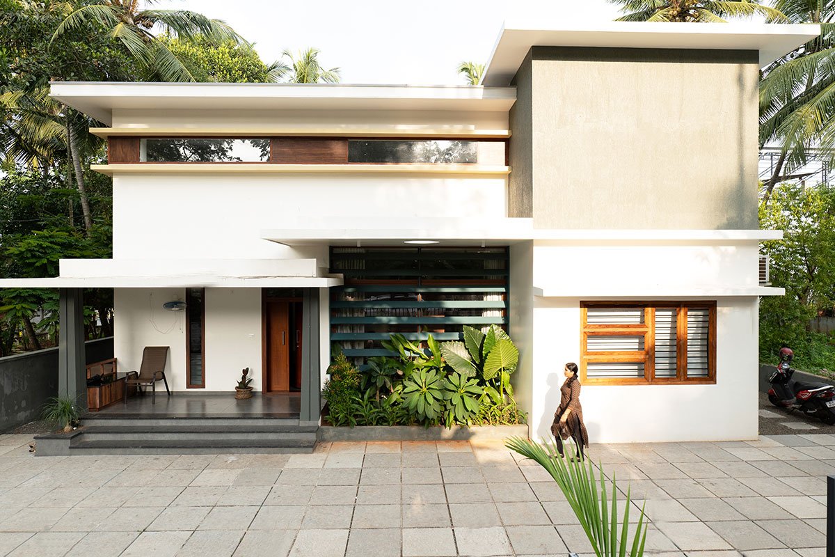 [Text as submitted by architect] The house is on a plot area of 5 cents which is surrounded by bungalows on adjoining sides and an access way only through the cut road. The client wanted the house to be outlined for a family of 3. Having lived in a very utilitarian house until now, they desired a shift to a house custom designed suiting their inner tastes and lifestyle. Expecting the design to be very functional, they at the same time believed in minimalism. To develop a concept which responds to the context and the client brief has been a journey for us.