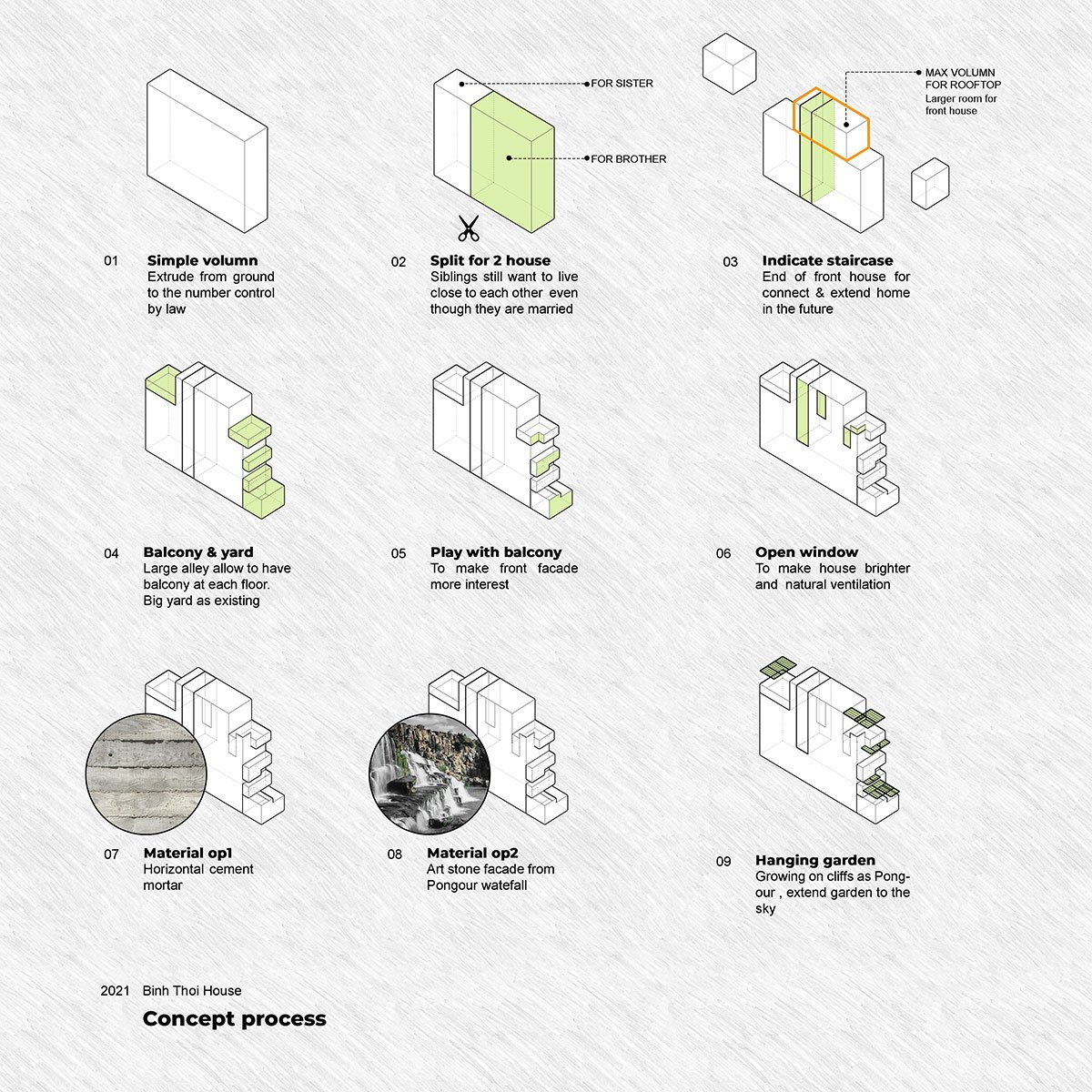 [Text as submitted by architect] Normally the human mind works like a biological mechanism: when something is missing, we desire it. Desire to taste a dish that our mothers used to cook, desire for the fragrance of the old house that we haven’t visited for more than a decade, desire to hear the cricket’s sound that we had abandoned in the past. Desire to see the sunshine playing on the trees in front of the terrace, desire to touch some values that daily life can’t even dream of. In the evolution of Sapien, our history is stick to nature, stick to the green.