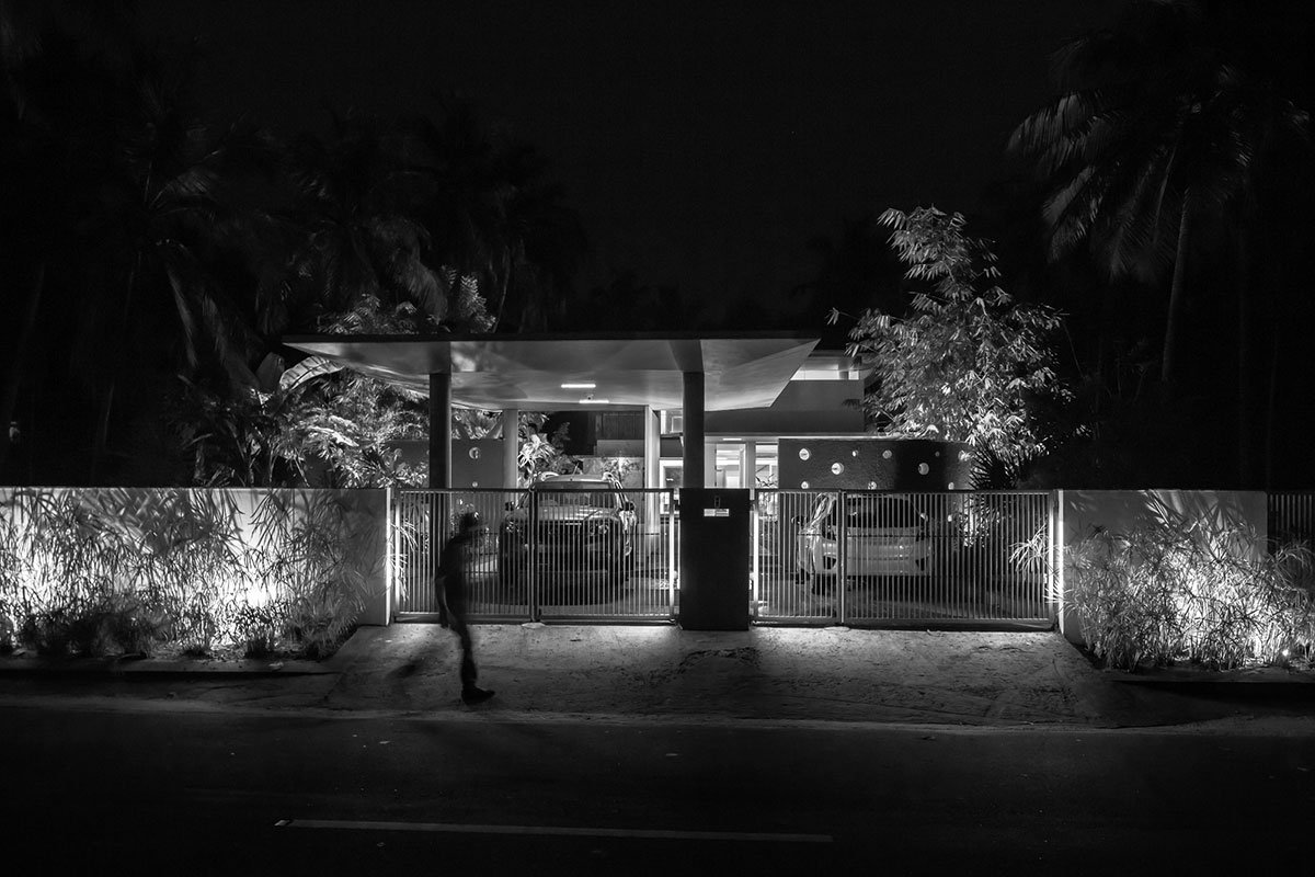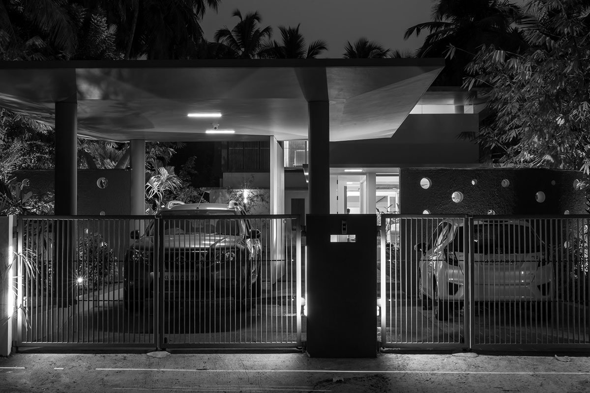 Excerpt: ‘The Floating Parasol House’ by LIJO.RENY.architects is a project that prioritizes privacy and is carefully planned to progress gently towards the rear, avoiding an imposing street-side presence. The house is divided into three main blocks separated by skylit courts. The site’s linearity is reflected in a strong circulation spine that dictates the sequential flow of spaces, extending from the pedestrian gate to the master bedroom.