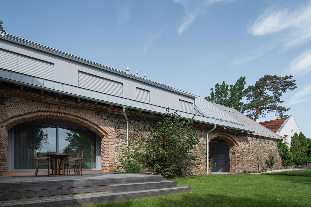 [Text as submitted by architect] Václav and Marie used to visit their grandmother in the small town of Dobříš, nestled at the foot of the Brdy Hills. When the opportunity arose to buy a plot of land with an old stone barn right next to her garden, they didn’t hesitate for a moment. They wanted their children to be able to visit their grandmother through secret passages in the fence, help her weed the flower beds, and, at the same time, put down their own roots. They hoped to create a space where they could listen to her stories and nurture a relationship that would remain with them for a lifetime.