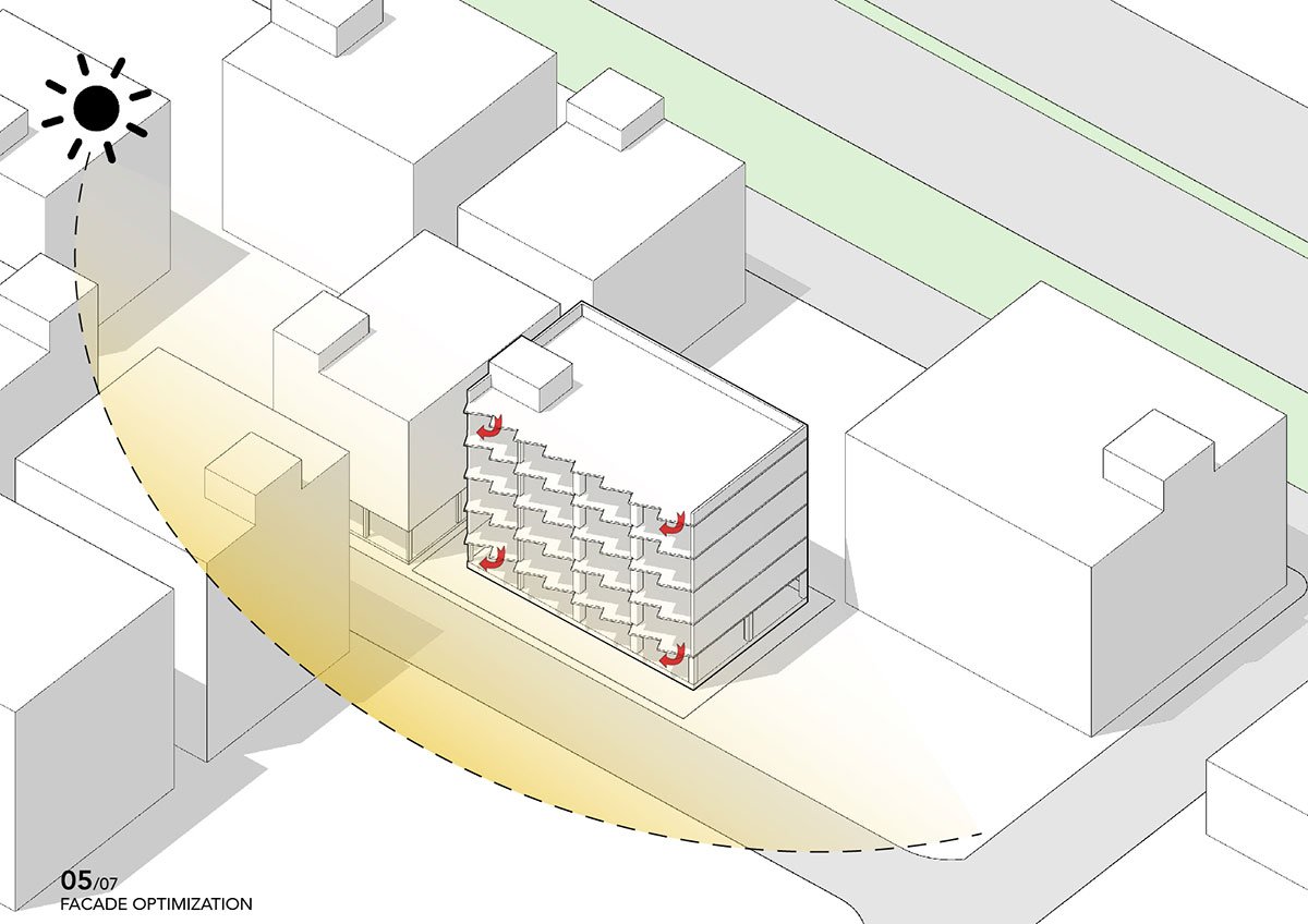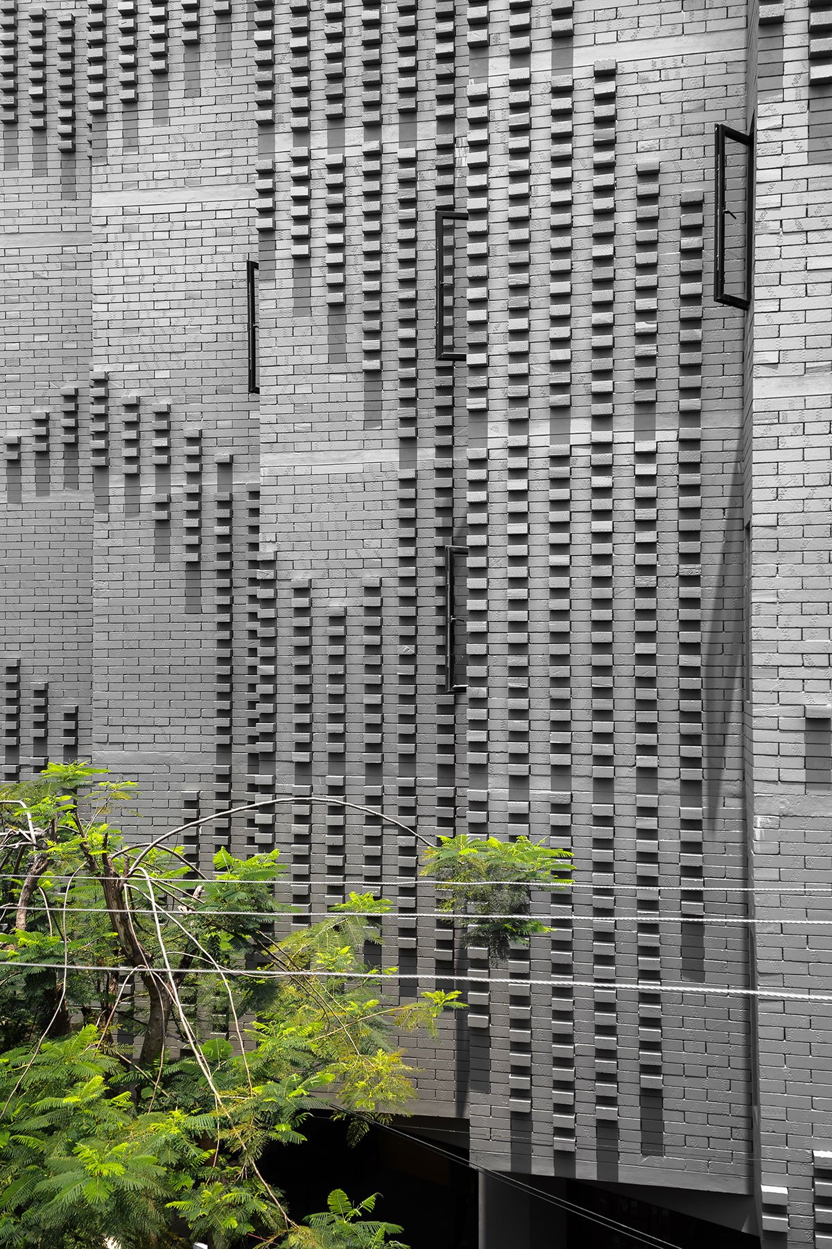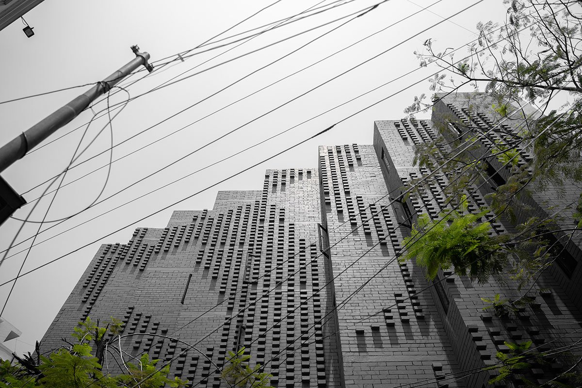 Thus, the resulting façade features a striking design with a patterned projection of the Aerated Concrete Blocks. These blocks create an intricate three-dimensional design. With the constant change in light and shade, the façade presents itself uniquely to the passersby every time. The facade provides a comfortable and healthy indoor environment while minimizing the building’s cooling needs and solar gains.