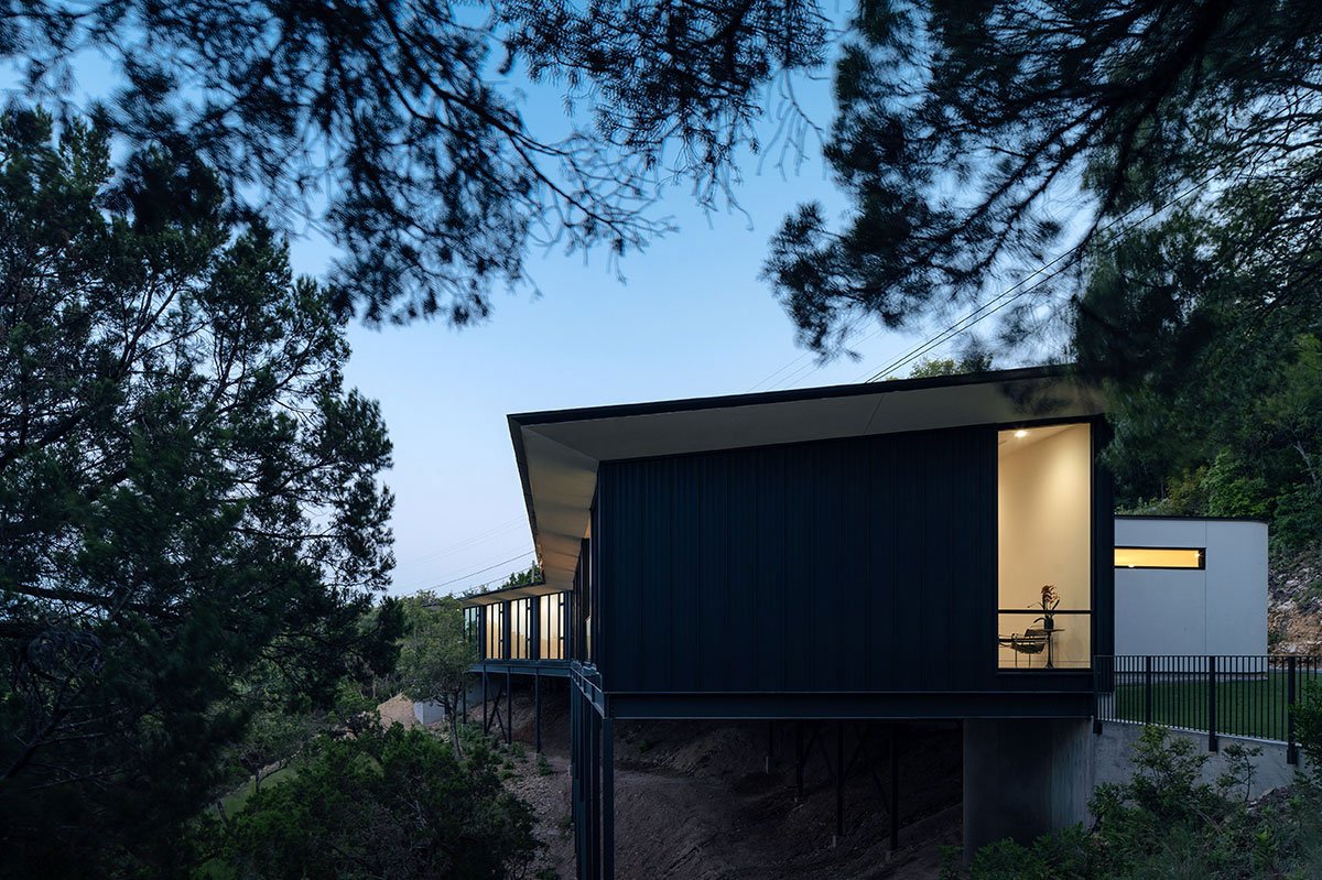 Excerpt: The High House is an architectural project designed by Ravel Architecture in USA. The plan was placed to take advantage of canyon and downtown views. A board formed retaining wall was placed in order to terrace the site for access.